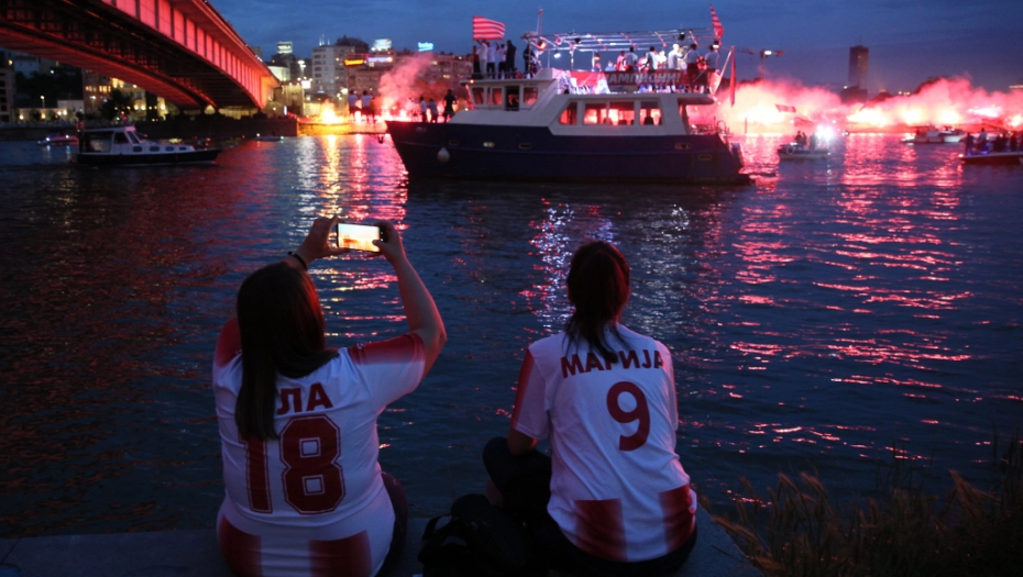 Fudbaleri i navijači Crvene zvezde proslavili su u subotu 32. titulu neobičnom ceremonijom na reci. Velika fešta trajala je do kasno u noć, a do kraja večeri sačekala ih je još jedna lepa vest.