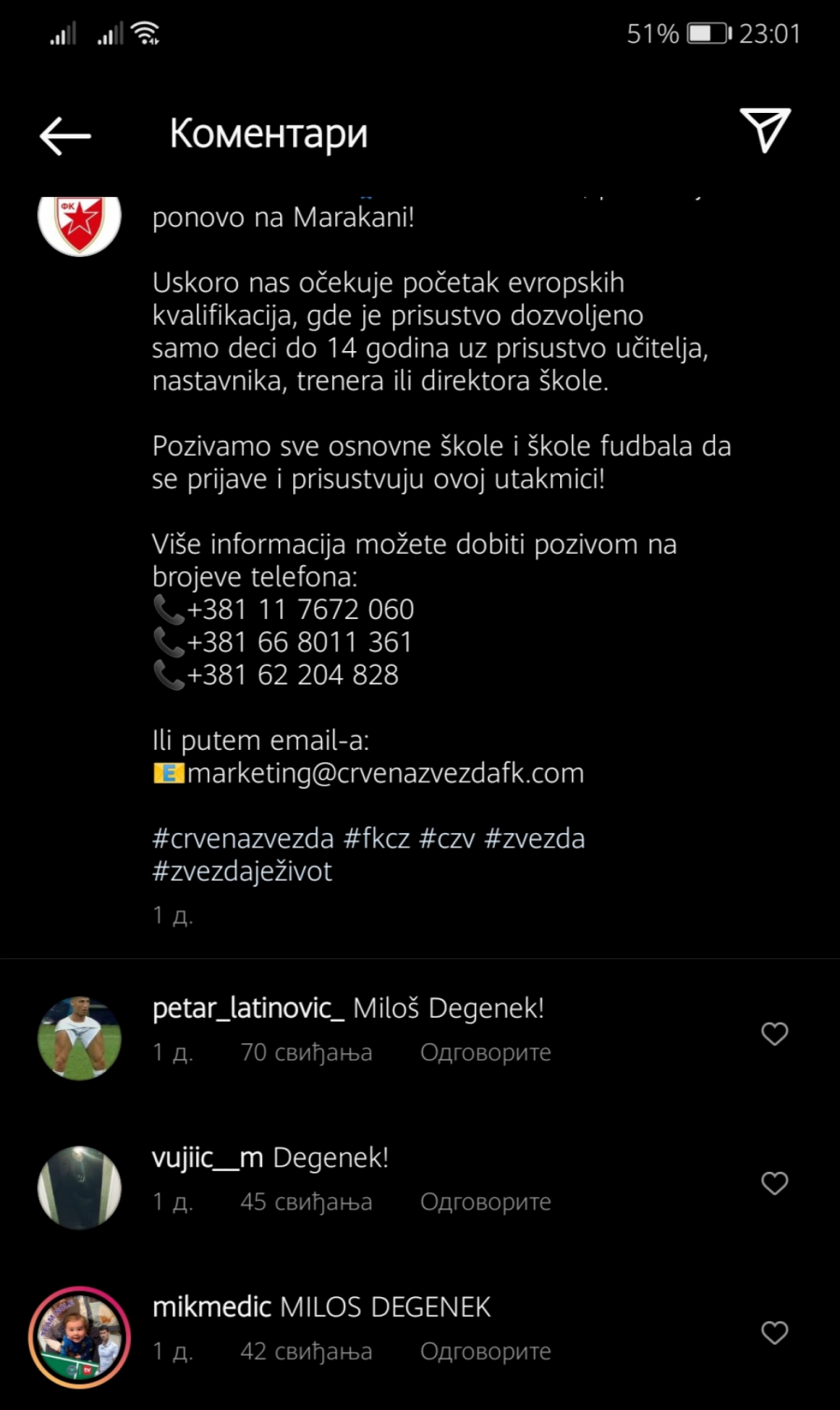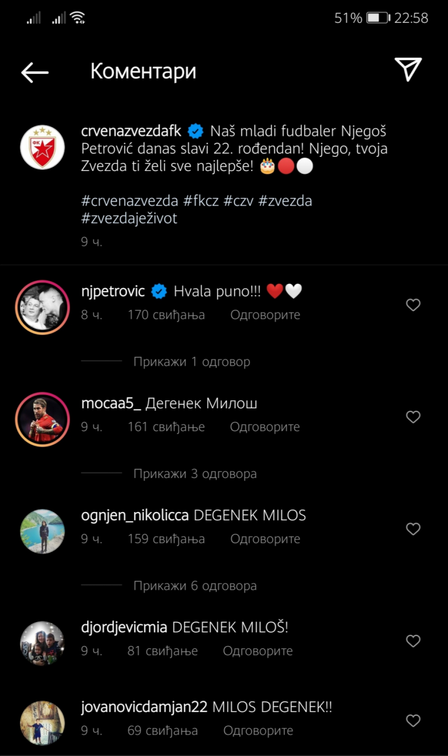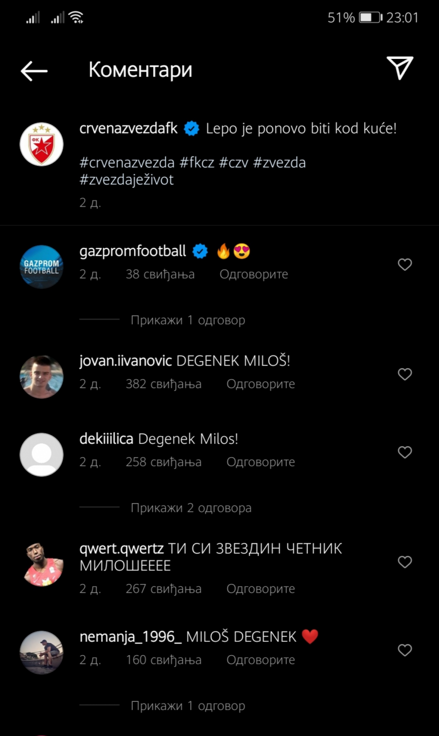 Jasno je i njima da je junak iz Salcburga i jedan od onih koji su uvek ginuli za dres Zvezde to zaslužio pa su želeli da se i njihov glas čuje. Društvene mreže crveno-belih prepune su poruka podrške Milošu Degeneku.