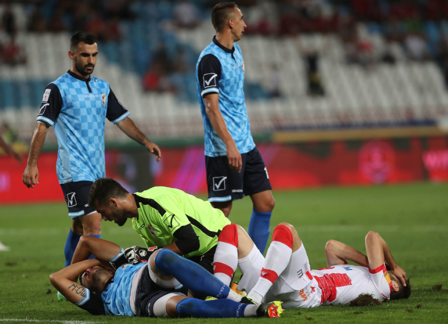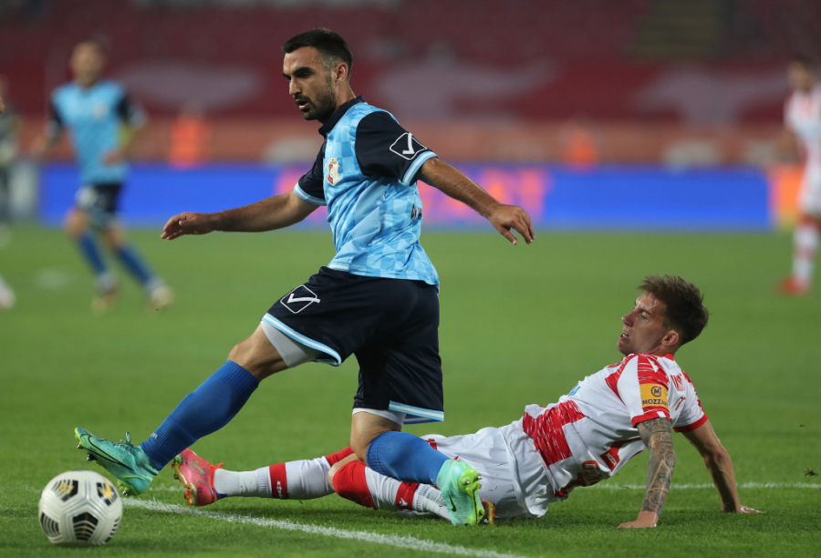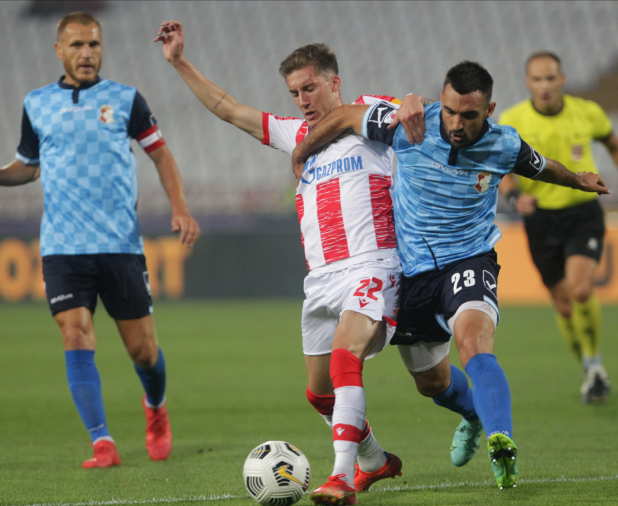CRVENA ZVEZDA: Borjan, Gajić, Degenek, Dragović, Bakajoko (od 60. Bakajoko), Lazetić (od 60. Krstović), Petrović, Krstičić (od 78. Srnić), Nikolić (od 60. Ivanić), Falko (od 66. Gavrić), Ben.