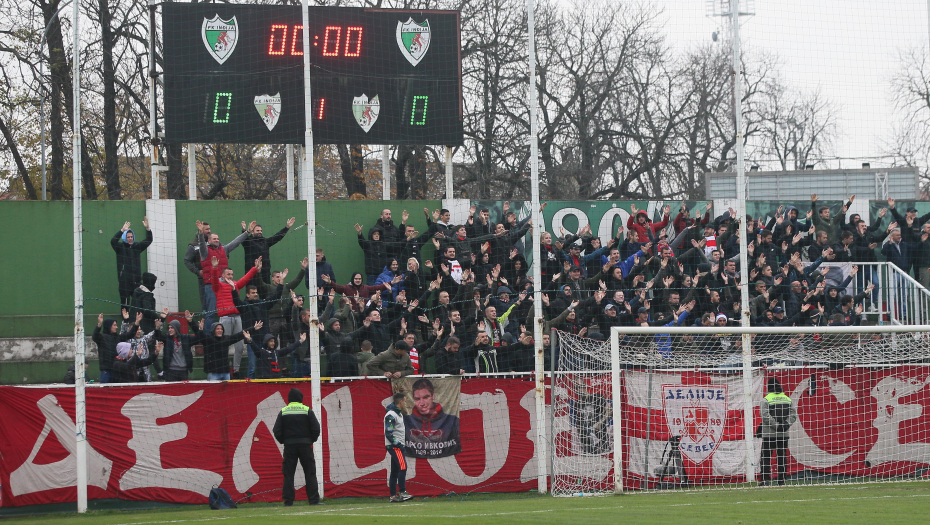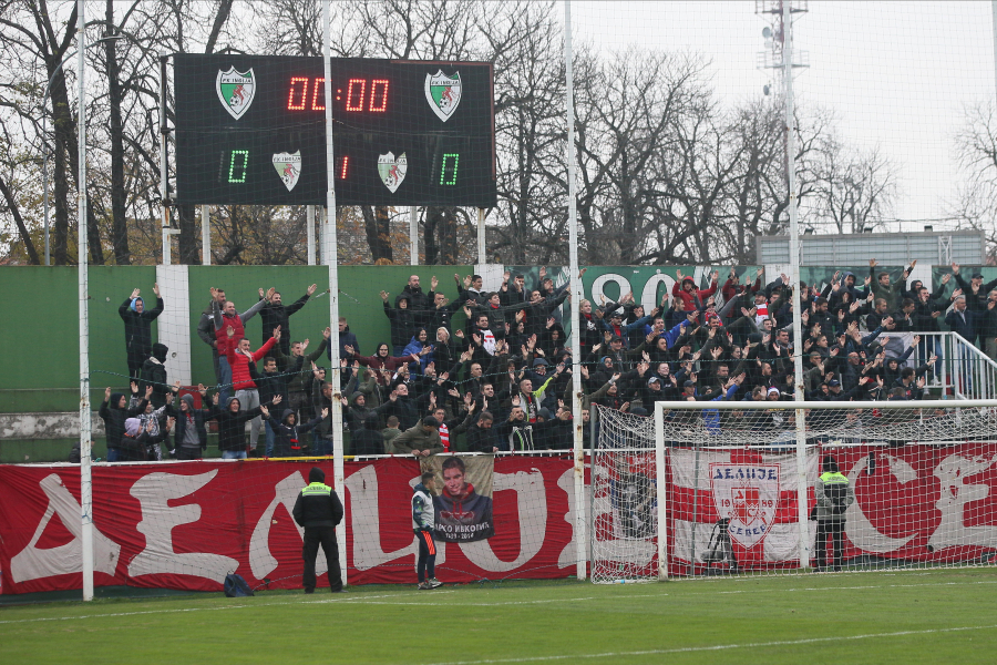 28. minut - Utakmica je prekinuta zbog skandiranja "delija" protiv Nenada Bjekovića koji bi uskoro trebalo da postane predsednik FSS.