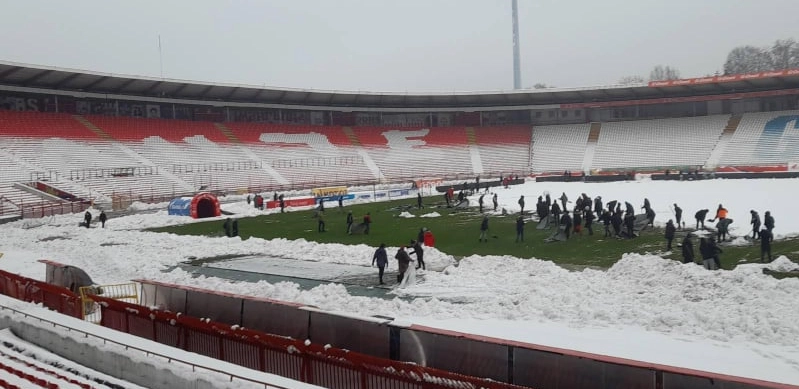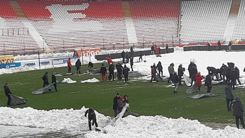 Šampion Srbije organizovao je "radnu akciju" kako bi se sneg očistio, a trava na stadionu "Rajko Mitić" bila čista pred dolazak jedine ekipe koja je savladala crveno-bele ove sezone u domaćem šampionatu.