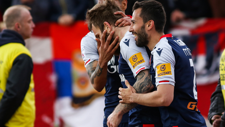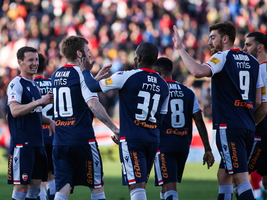 Fudbaleri Crvene zvezde pobednili su u Nišu ekipu Radničkog sa 5:1 u utakmici 29. kola Superlige Srbije.