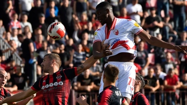 42. minut - Centrirao je Stefan Mitrović, a loptu glavom zahvatio Marko Gobeljić, ali je ona otišla preko gola koji brani Samurović.