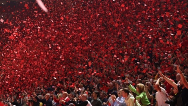 Milioni crveno-belih papirića je letela celom halom, a košarkaši Barselone su bili totalno zabezeknuti.