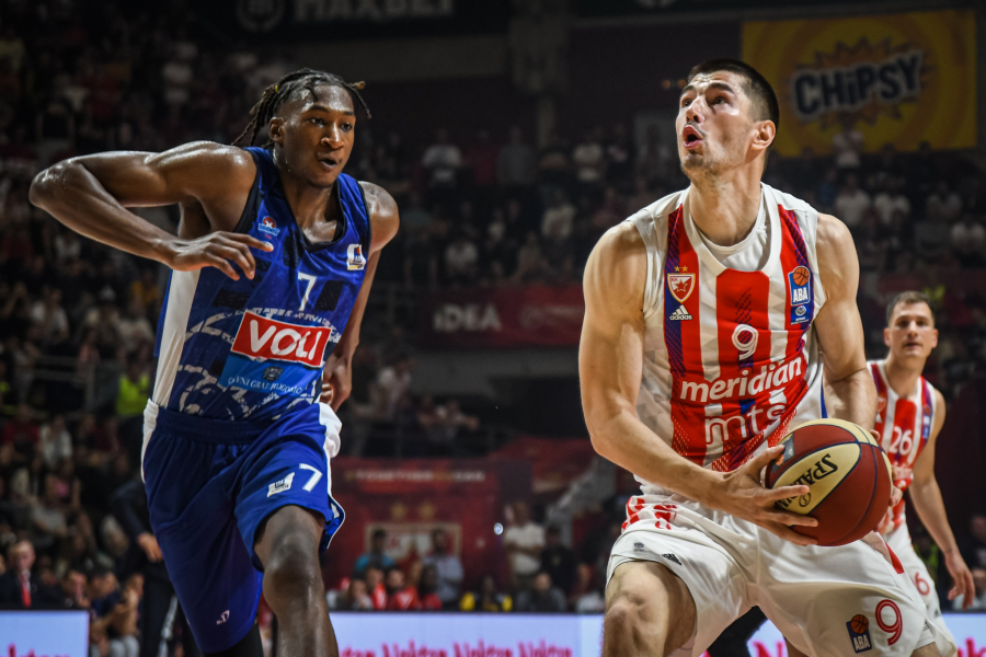 21. minut - Šta je sada pogodio Nedović! Uspeo je da izbaci loptu jednom rukom na isteku napada i doneo Zvezdi novu trojku!
