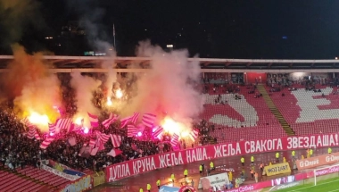 - Dupla kruna želja naša, želja svakog zvezdaša - piše na transparentu navijača Crvene zvezde.