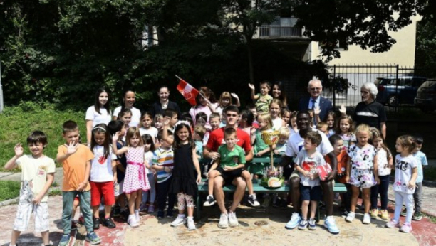 - Mališani iz ovog vrtića su uporno pisali i imali veliku želju da dođu fudbaleri Crvene zvezde kod nas u posetu. Mnogo se raduju i neopisivo im znači dolazak prvotimaca crveno-belih, kao i predsednika kluba, a vama beskrajno hvala na ovoj donaciji. Ako govorimo o najranijem uzrastu, deca uče po modelu, tako da u davanju pozitivnog primera oblikujemo novije generacije, a vi ste nam u tome pomogli, jer im na pravi način promovišemo sport, jer što se više dece bude bavilo sportom, imaćemo manje problema. Oni su sada mnogo uzbuđeni zbog golova koje smo dobili od vas i svi govore kako će postati fudbaleri, tako da vam još jednom hvala što ste nam pomogli sa uređivanjem dvorišta za njihovu dobrobit - rekla je vaspitačica vrtića "Duga" Milica Pavlović.