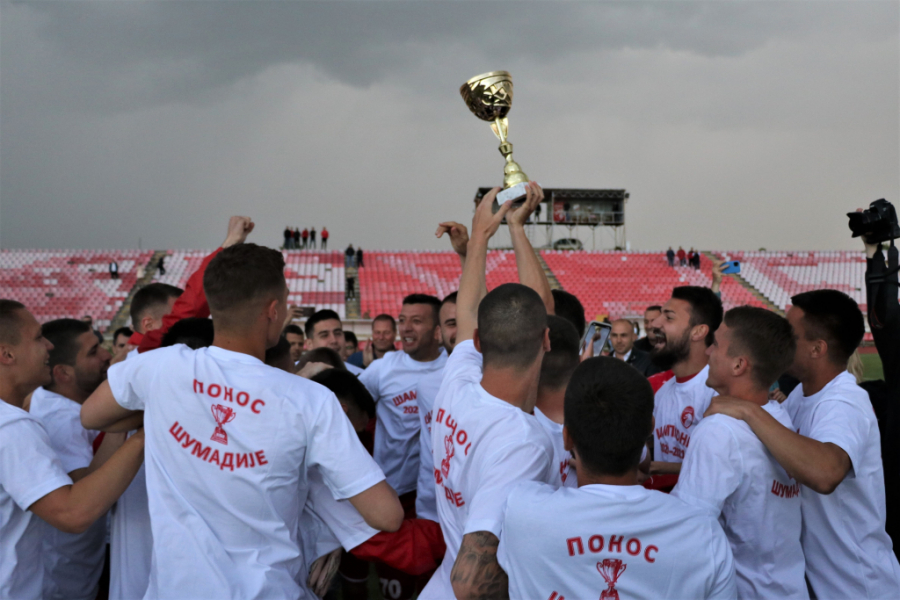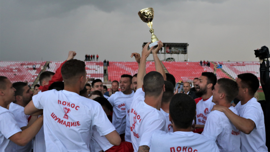 Po završetku meča, gradonačelnik Nikola Dašić je kapitenu Kovačeviću uručio pehar, dar Skupštine grada Kragujevca i slavlje je moglo da počne.