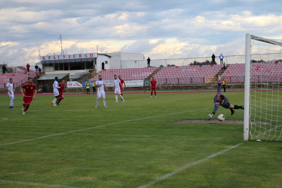 U 60. minutu kapiten Stevan Kovačević je preciznim šutem iz daljine savladao golmana Jagodinaca Mladena Stojiljkovića, a šest minuta kasnije, šutem glavom iz blizine Nikola Rađen je otklonio sve dileme i doneo Kragujevčanima plasman u Superligu sa prvog mesta.