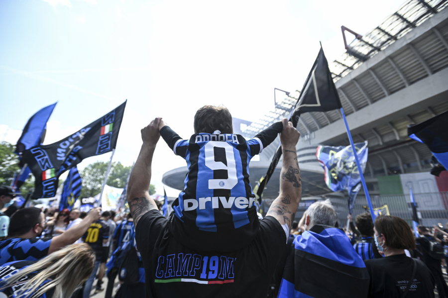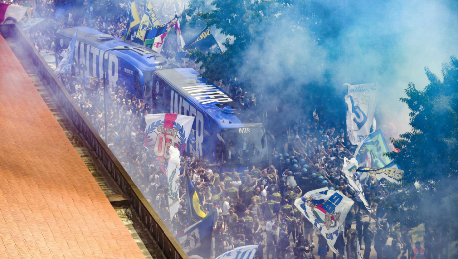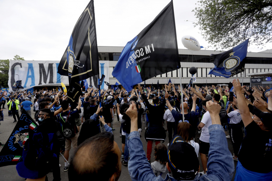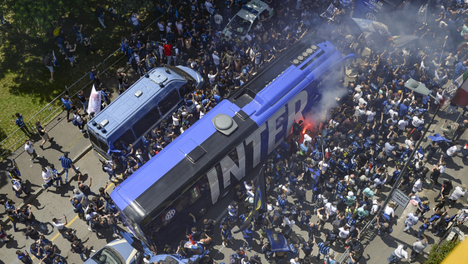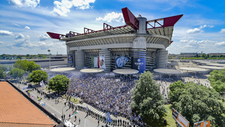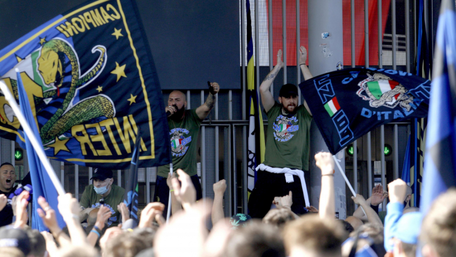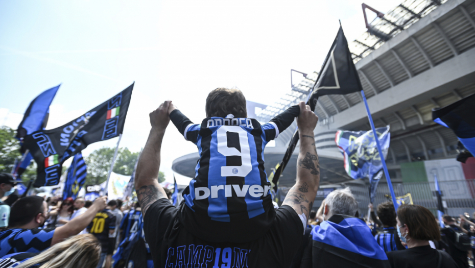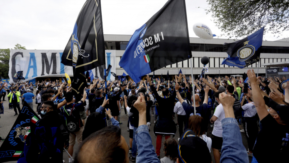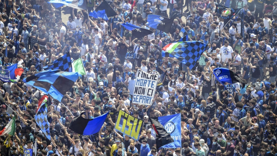 Navijači nero-azura okupili su se ispred "Đuzepe Meaca kako bi proslavili 19. titulu u italijanskom šampionatu koju je osvojio njihov omiljeni klub.