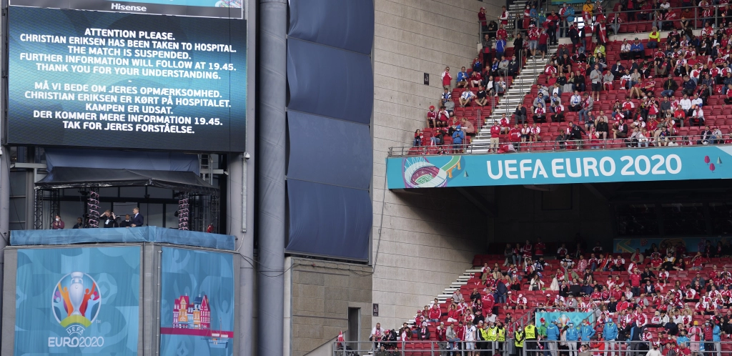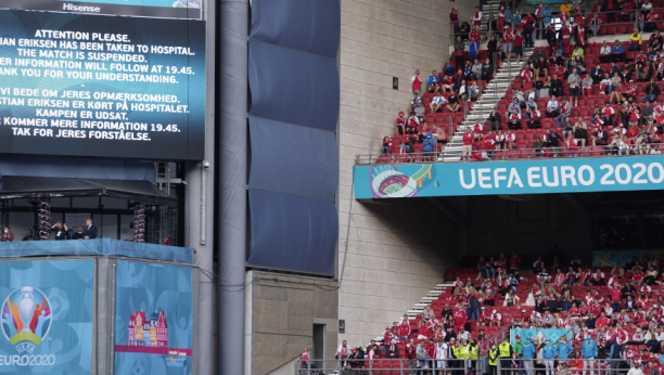 Utakmica Danske i Finske na Evropskom prvenstvu je prekinuta kada se Kristijan Eriksen srušio na teren krajem prvog poluvremena.