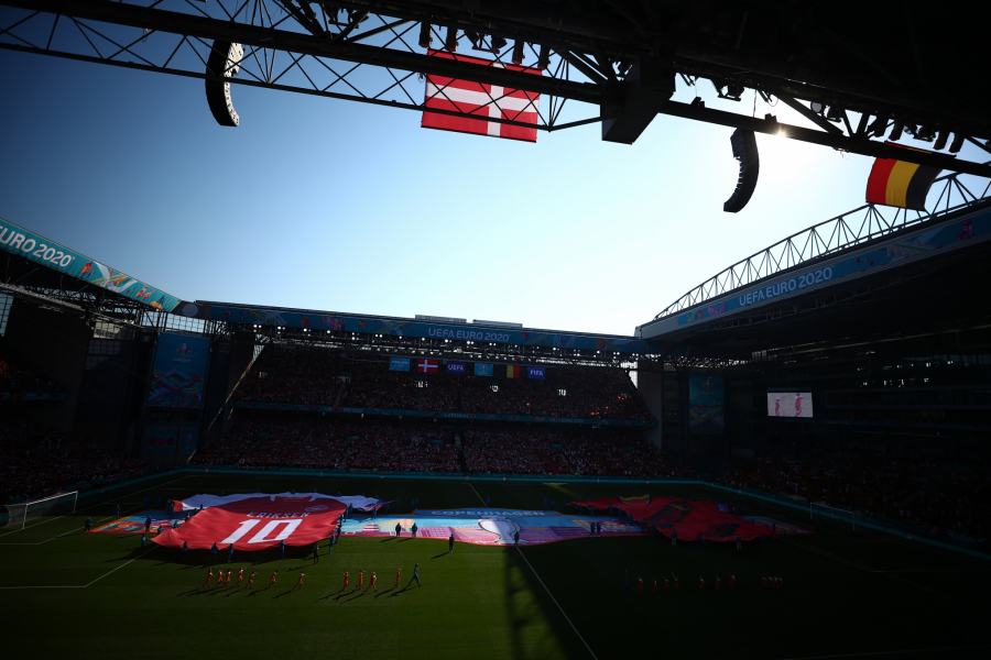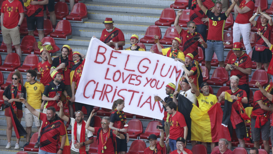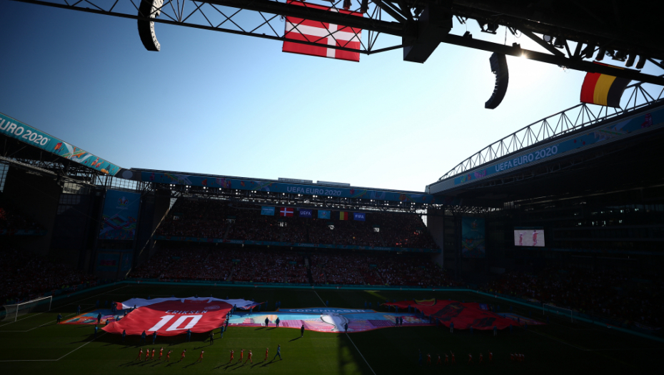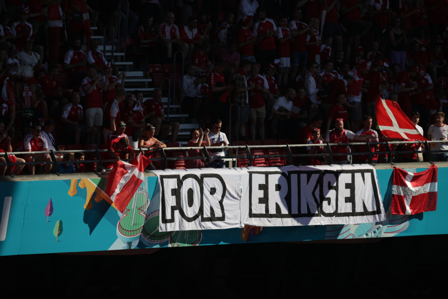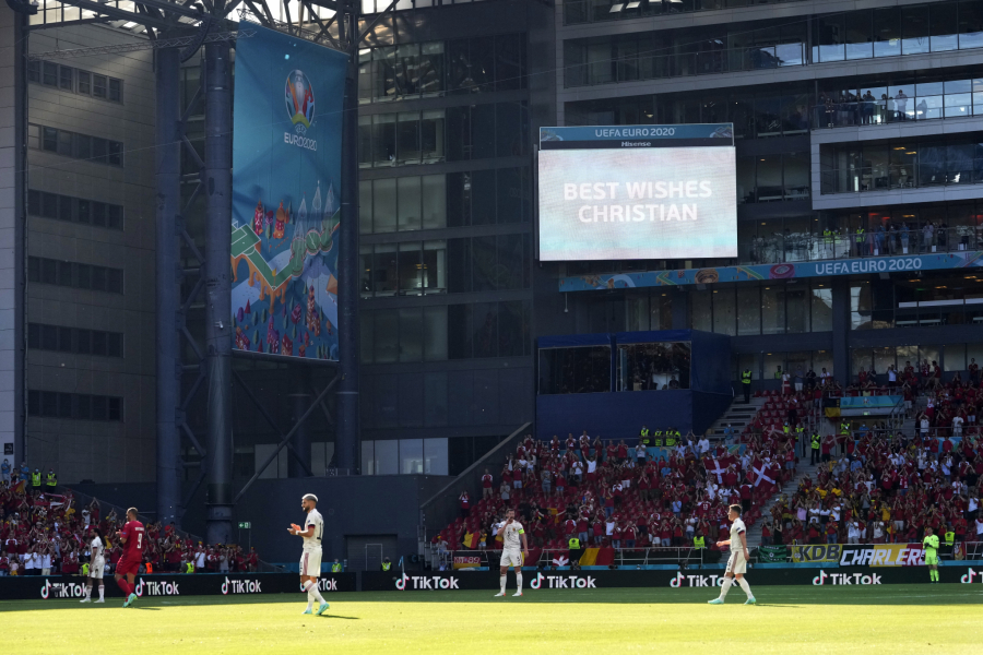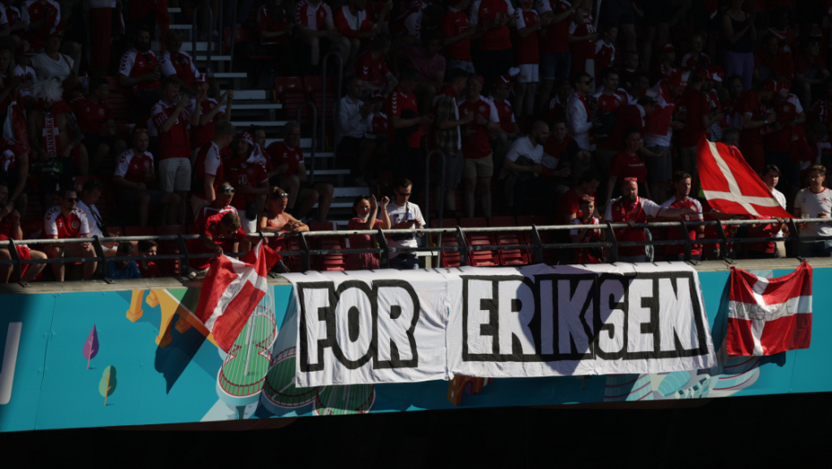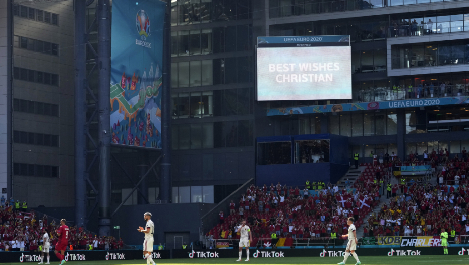 Lopta je izbačem u aut, kako bi u desetom minutu ceo stadion poslao podršku Krstijana Eriksenu.