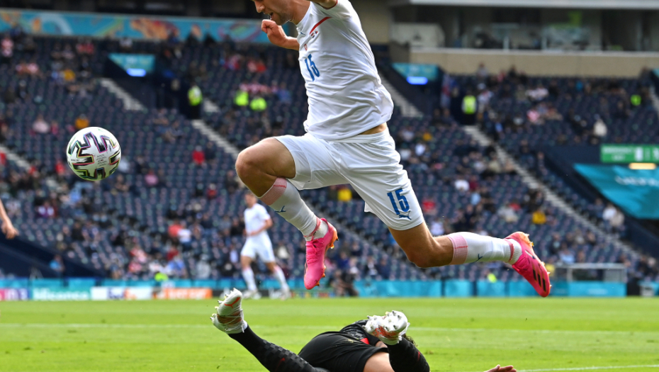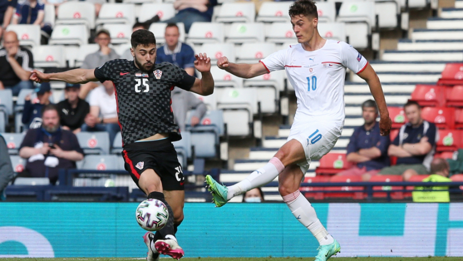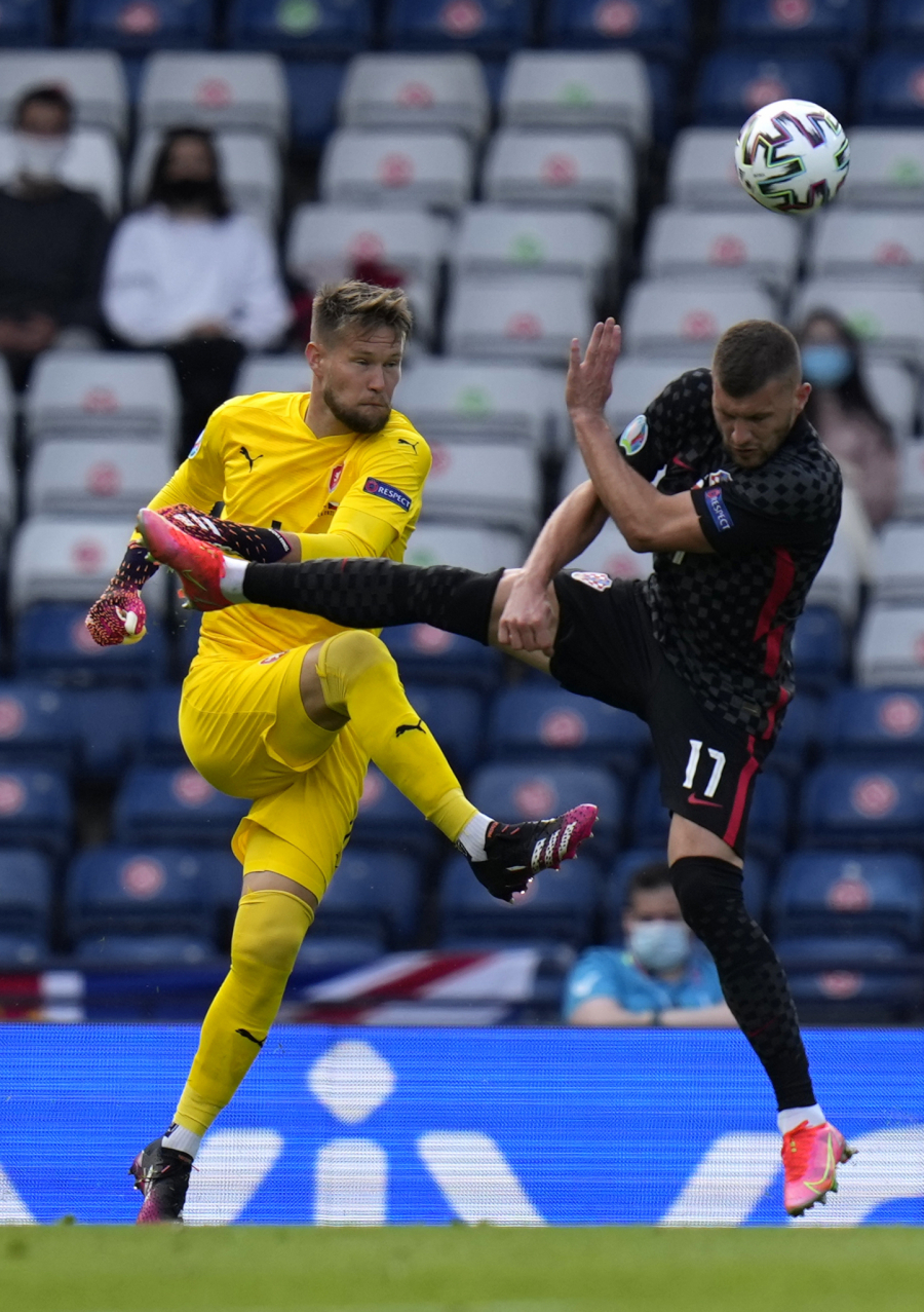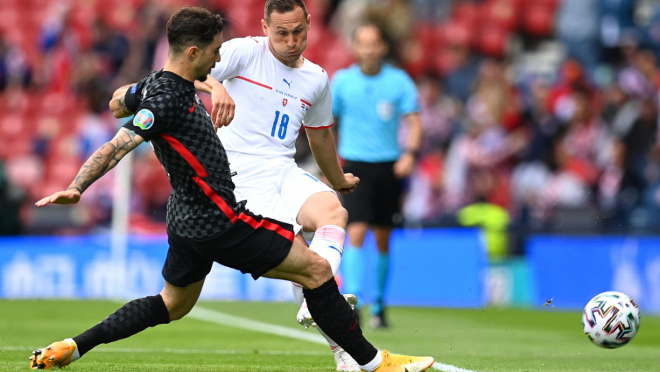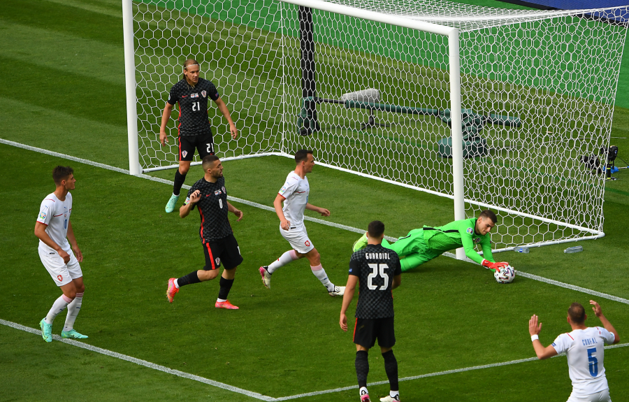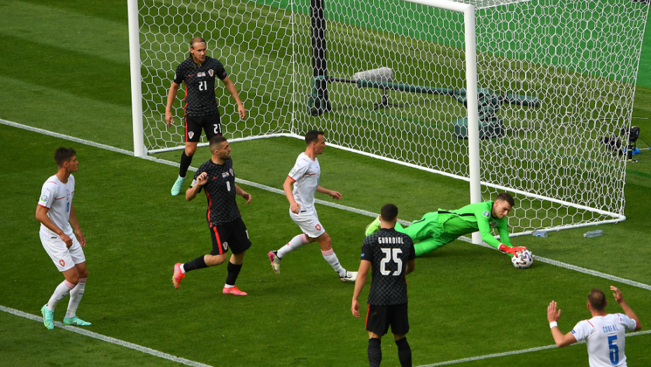 18. minut: Malo komešanje u kaznenom Hrvata, ali nije to bila ozbiljnija šansa za Čehe. Livaković je pustio loptu da izađe u gol aut.
