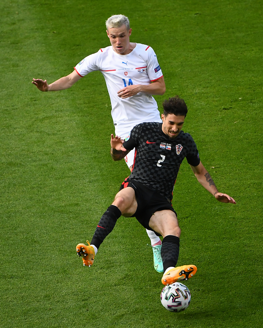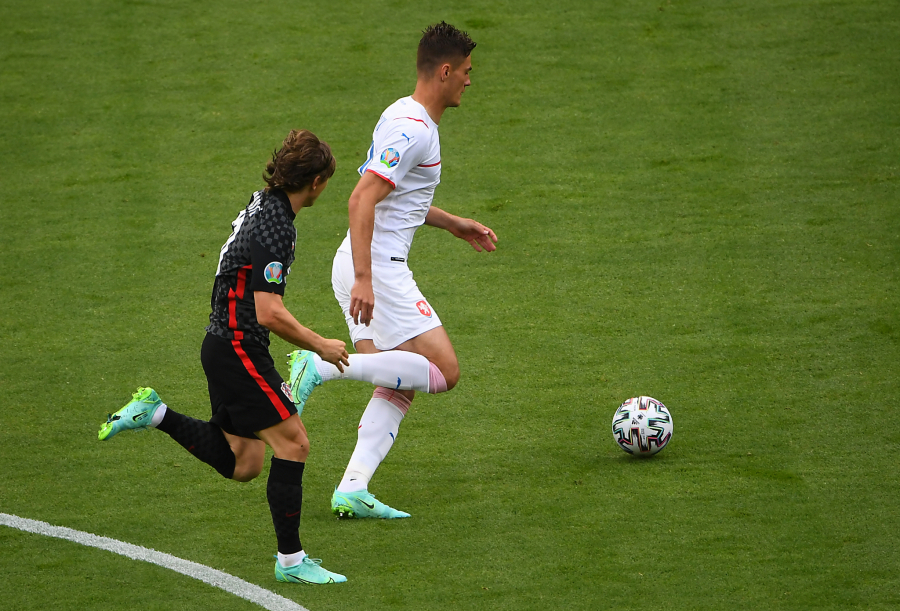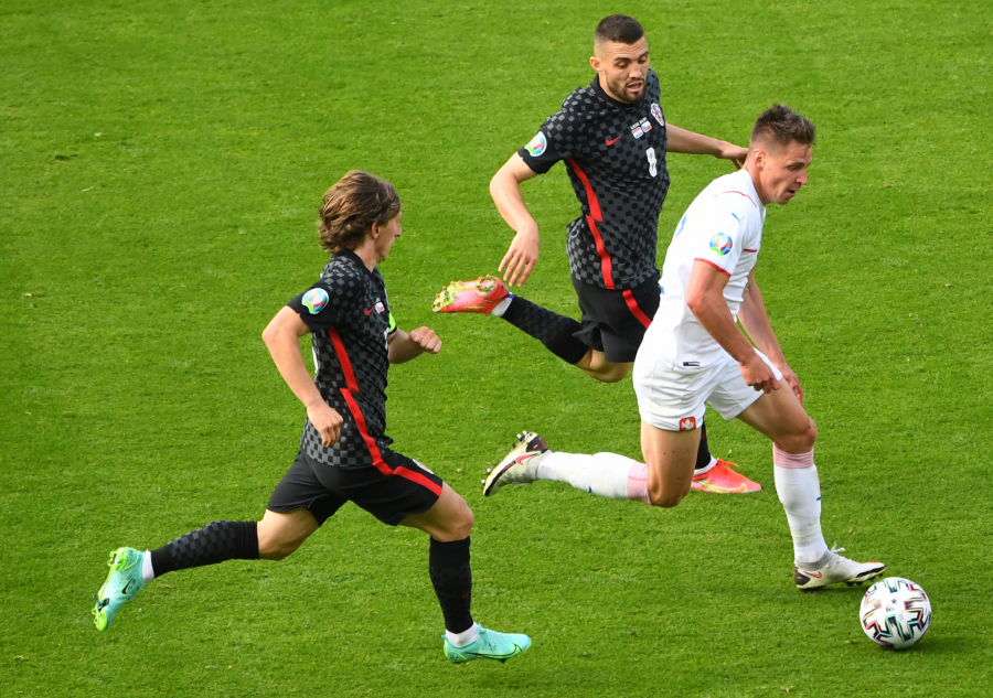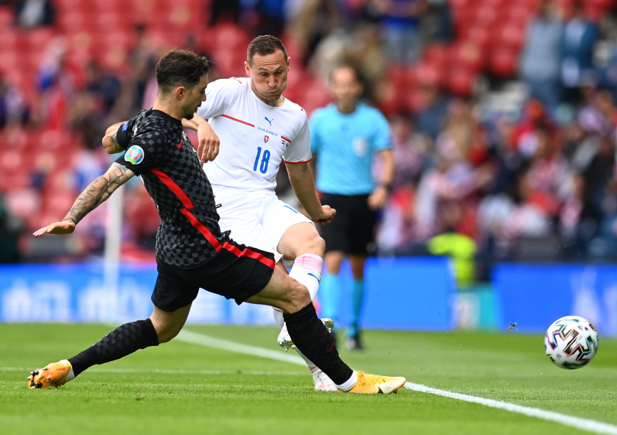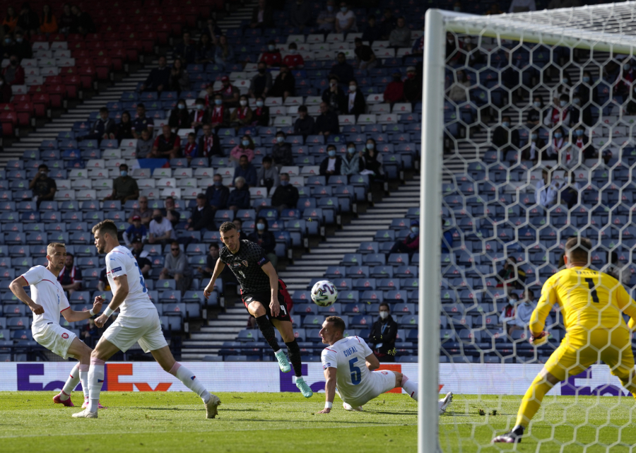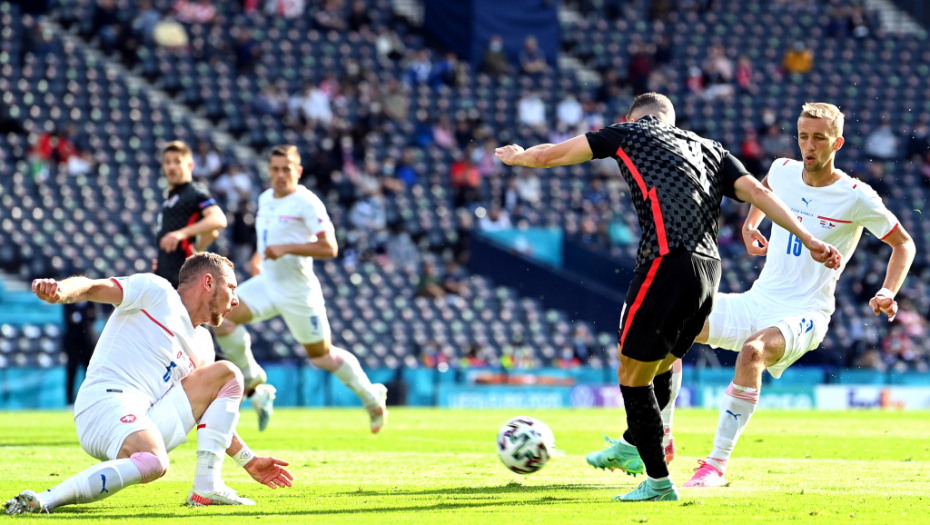 72. minut: Ubačena lopta u kazneni Čeha, Perišić je glavom spušta za Vlašića, on se gradi, šutira iz okreta, iako se bacio Vaclik bi bio savladan, ali je lopta završila malo iznad prečke.