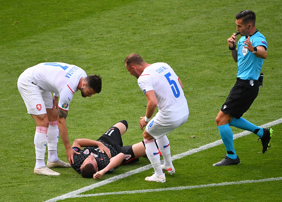 21. minut: Vaclik je ispucavao loptu, napucao je Rebića, koji se posle nekoliko sekundi u bolovima našao na zemlji.