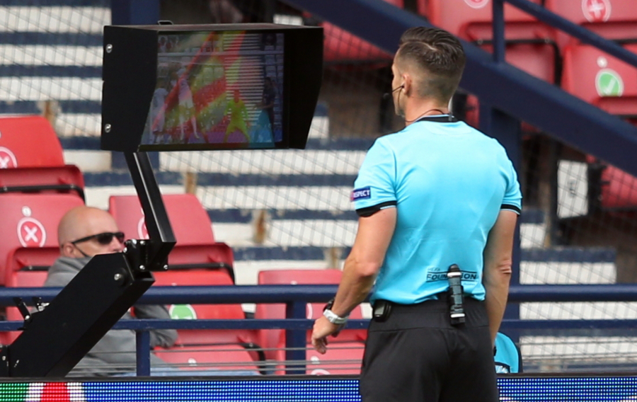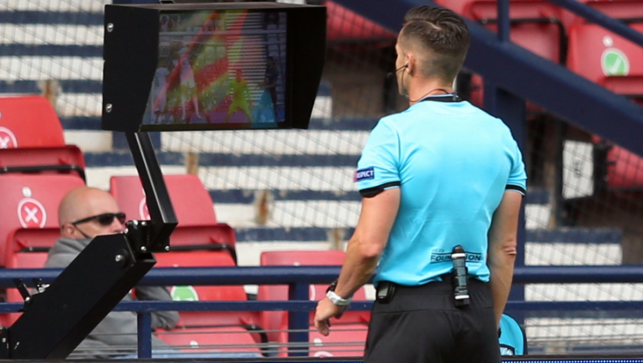 35. minut: Sudiji se javlja VAR, sam ide da gleda snimak. Vraća se i pokazuje na penal, Lovrenu daje žuti karton.
