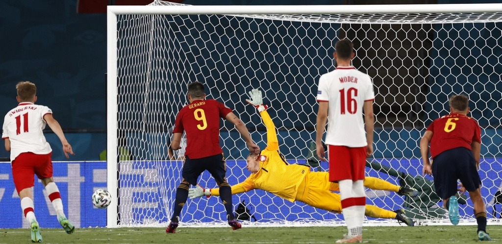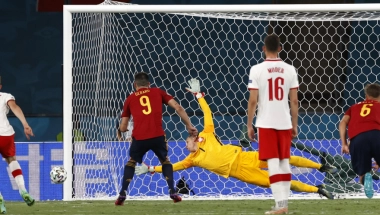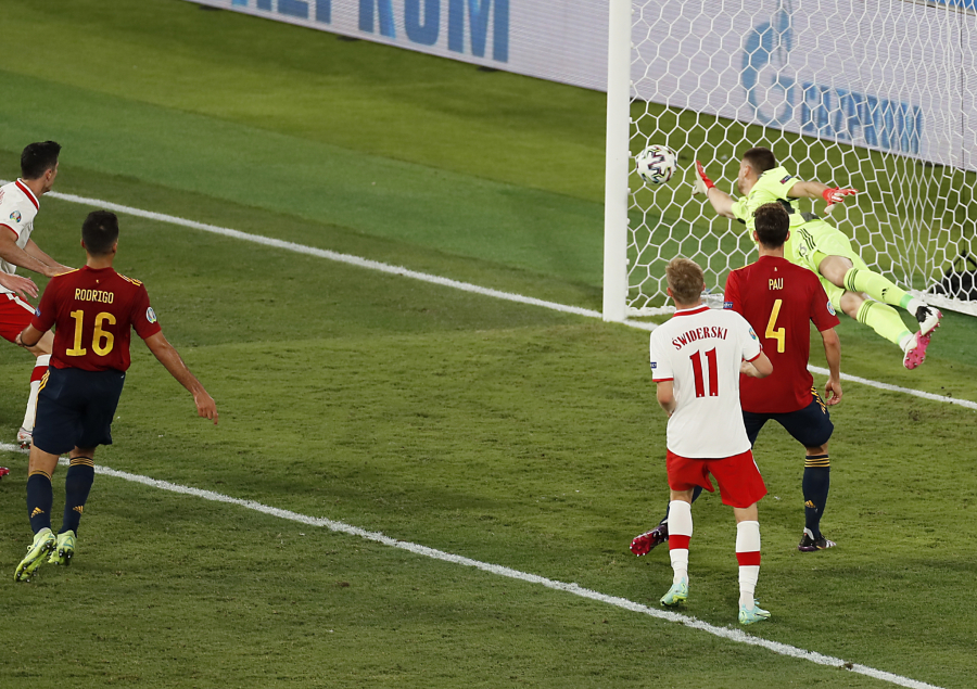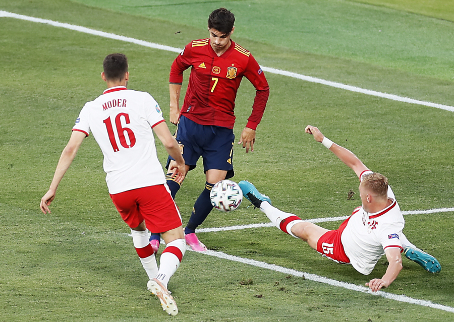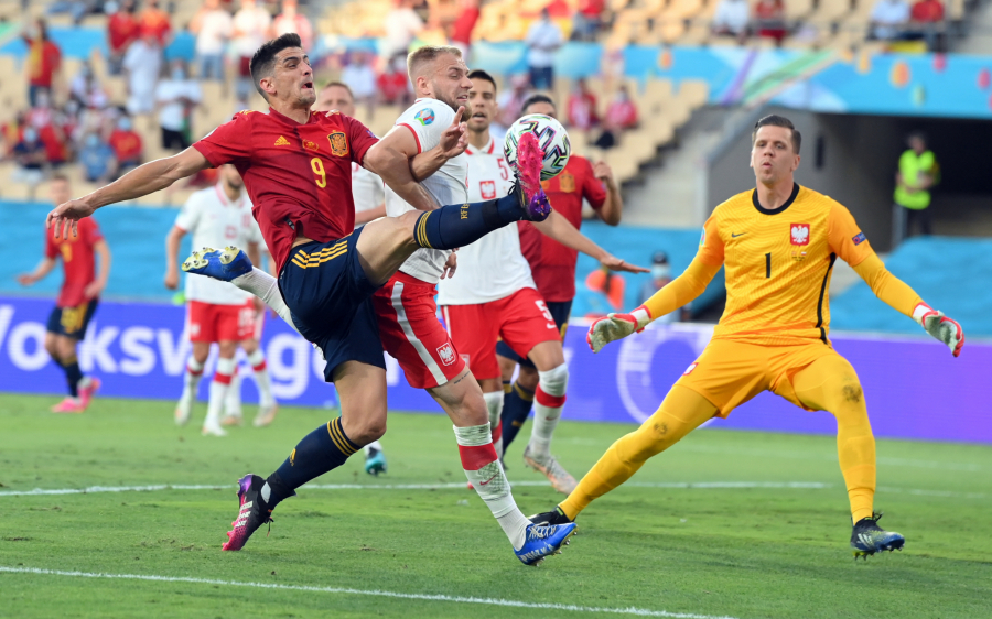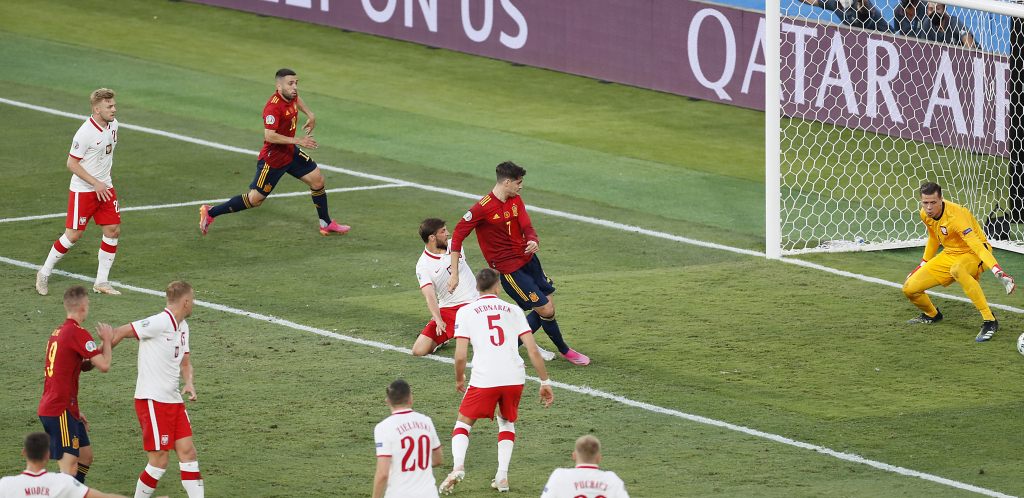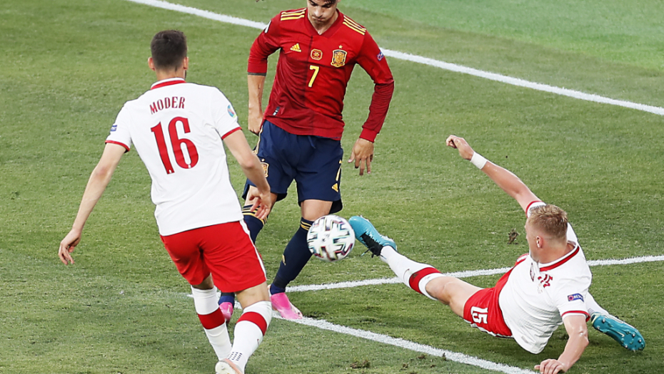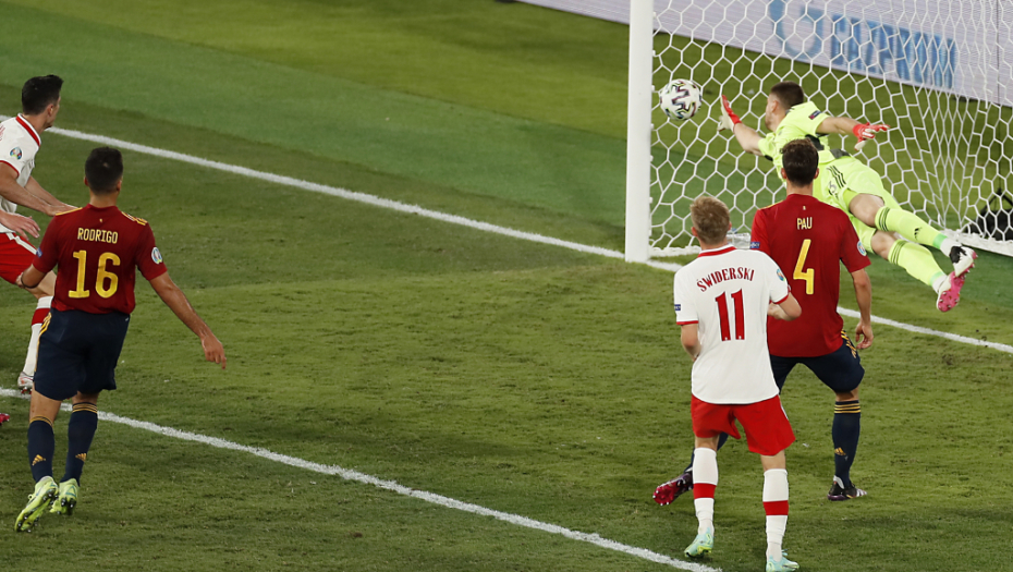 83. minut: Sjajno ubačena lopta u kazneni Poljske, Sarabia je grudima spustio na tri metra za Moratu, zicer, ali mu se u noge bacio Ščesni i odbranio zicer glavom.