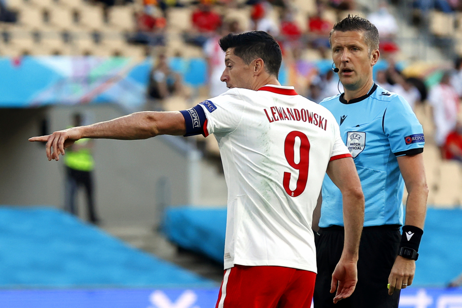 90+3. minut: Žuti karton za Levandovskog zbog faula na sredini terena.