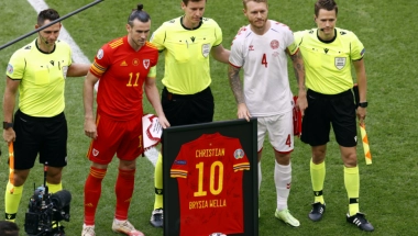 Kapiten Velšana Geret Bejl je Dancima pre meča uručio uramljen dres Velsa sa imenom Kristijana Eriksena.
