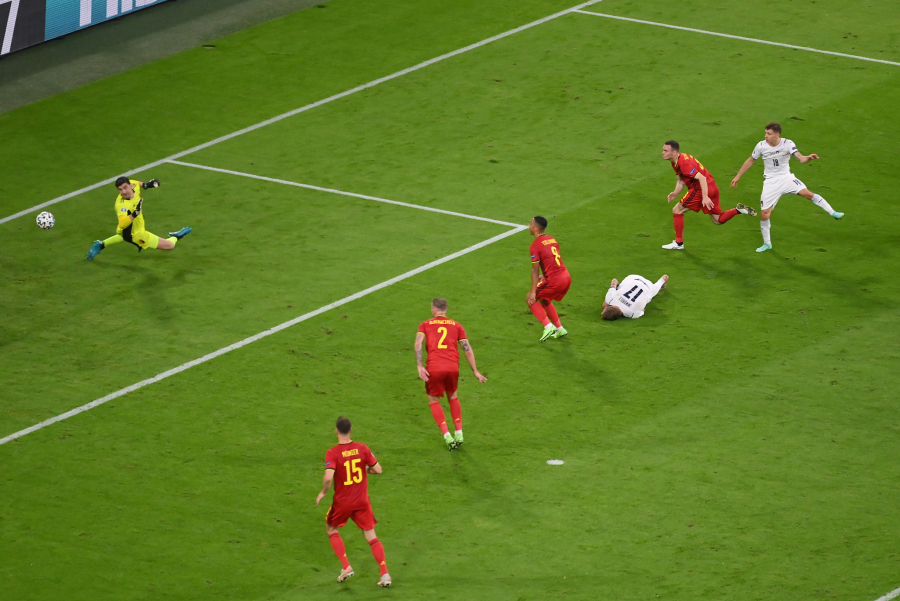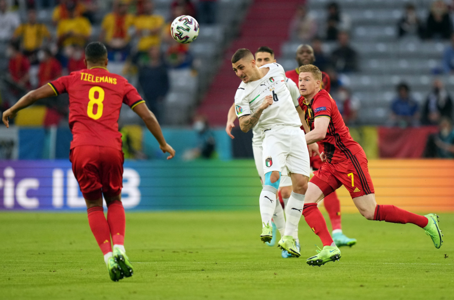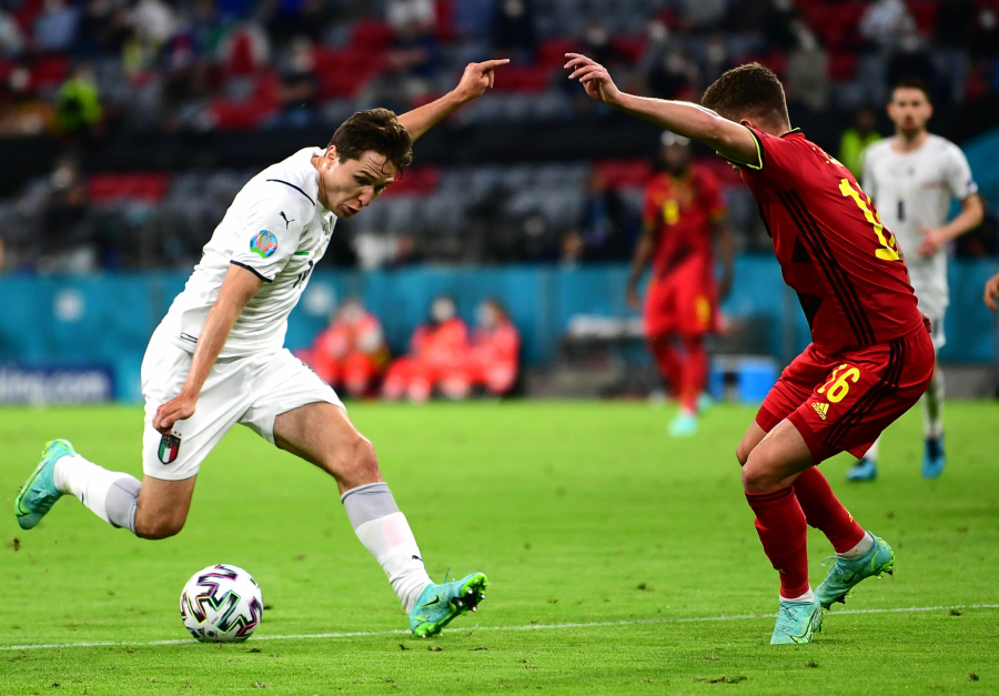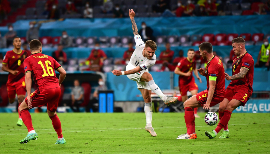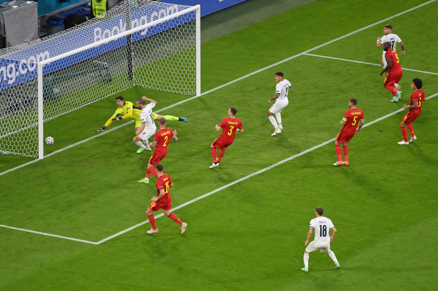 Duel možda i dve selekcije koje igraju najofanzivnije na celom turniru, u Minhenu su se sastali Belgija i Italija. Mnogi predviđaju da će pobednik ovog duela na kraju i podići pehar, a to je Italija, koja je golovima Barele i Insinjea finišu prvog poluvremena došla do kapitala koji Belgija nije uspela da nadoknadi 2:1.
