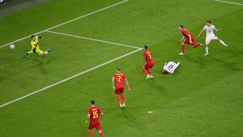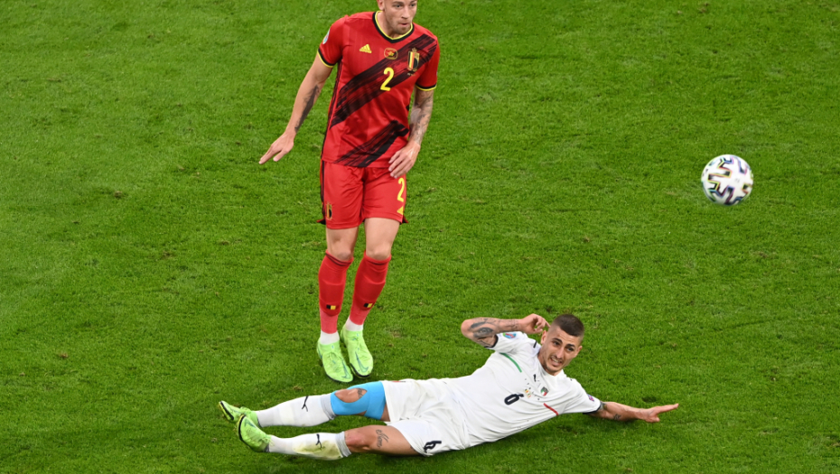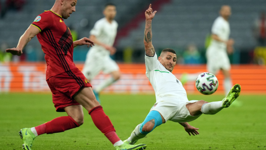 31. minut: Gužva u kaznenom Belgije, Italijan je pao, ali je sudija dozvolio da se nastavi meč. Nisu belgijanci uspeli da odnesu loptu podalje od kaznenog, uzeo je Verati, dao loptu u kazneni do Barele, on se izmuvao između trojice, a onda raspalio sa desetak metara iskosa i pogodio suprotni ćošak, Belgija - Italija 0:1.