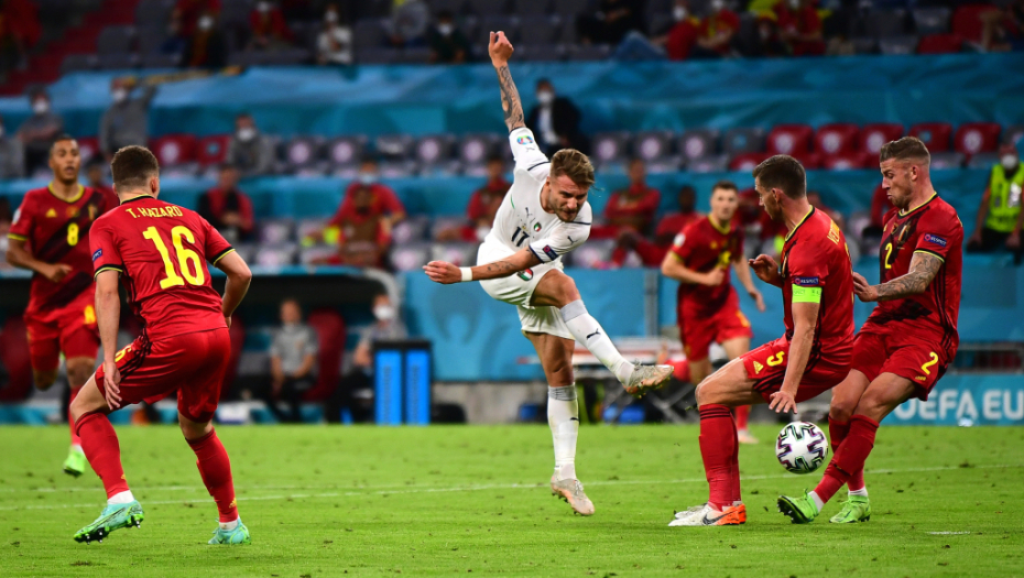 2. jul (Minhen): Belgija - Italija 1:2 (Lukaku 45+2. penal - Barela 31, Insinje 44)