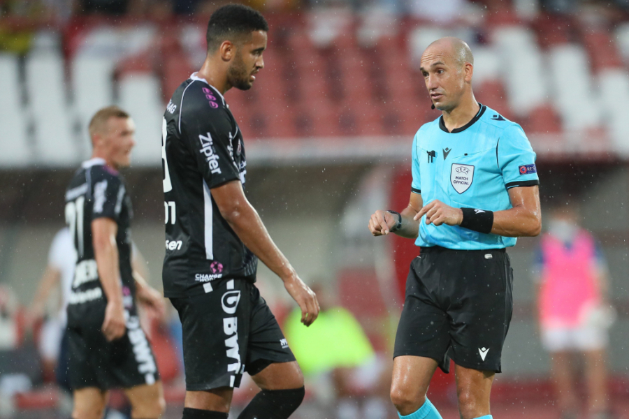 24. minut - Prvi žuti karton na meču, dobio ga je fudbaler LASK-a Lukas Grgić.