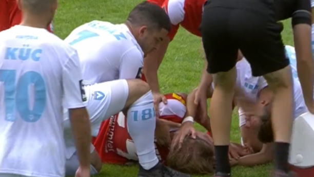 Feliks Gece (23) je u 71. minutu posle sudara sa saigračem ostao nepomično da leži na travi.