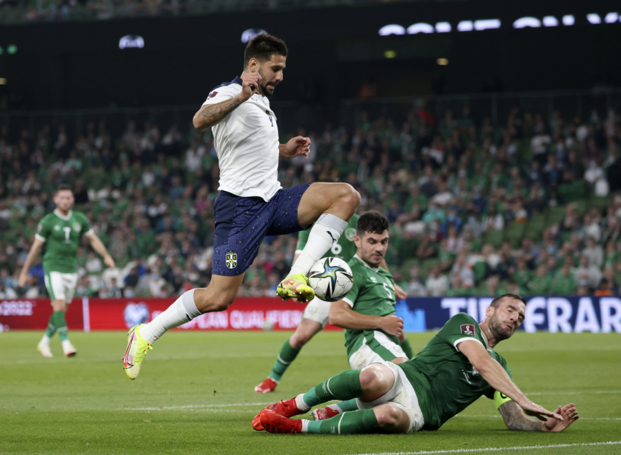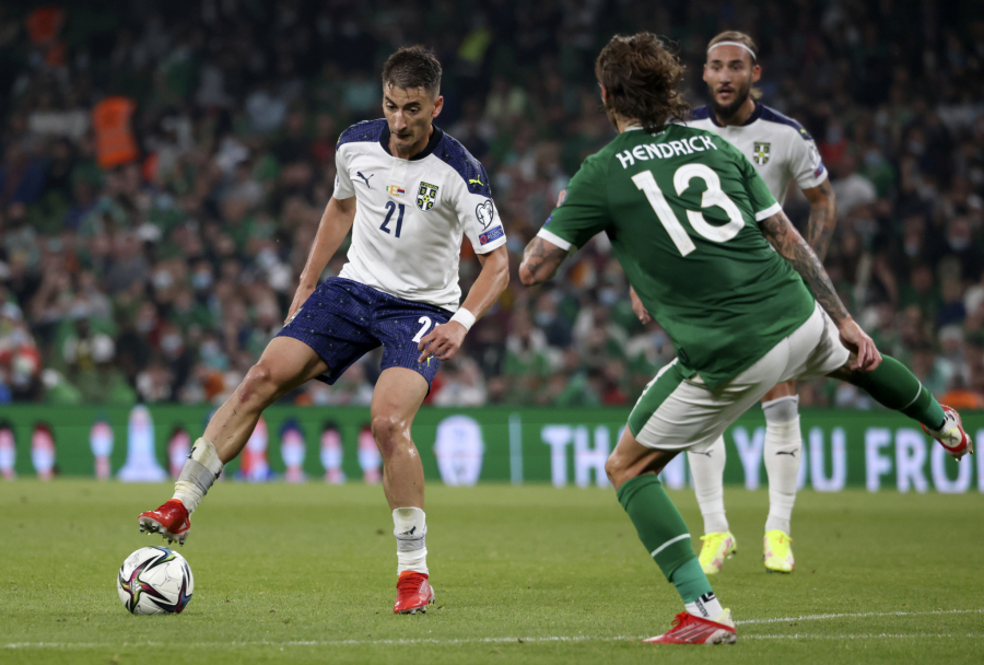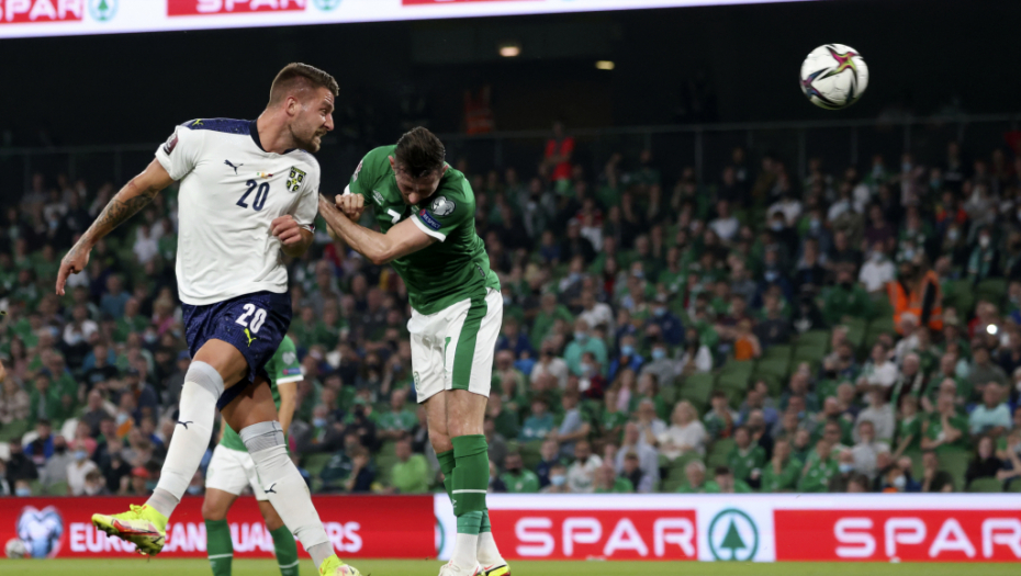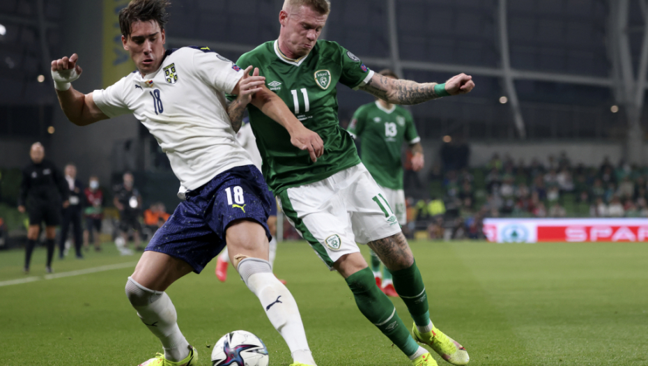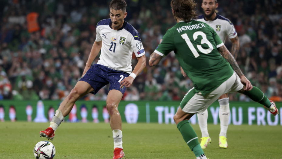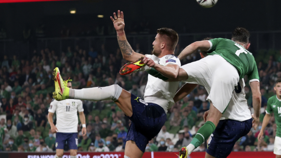 20. minut: Tadić je izveo korner sa desne strane, na prvoj stativi našao se Milinković-Savić i glavom matirao Bazunua, Republika Irska - Srbija 0:1.
