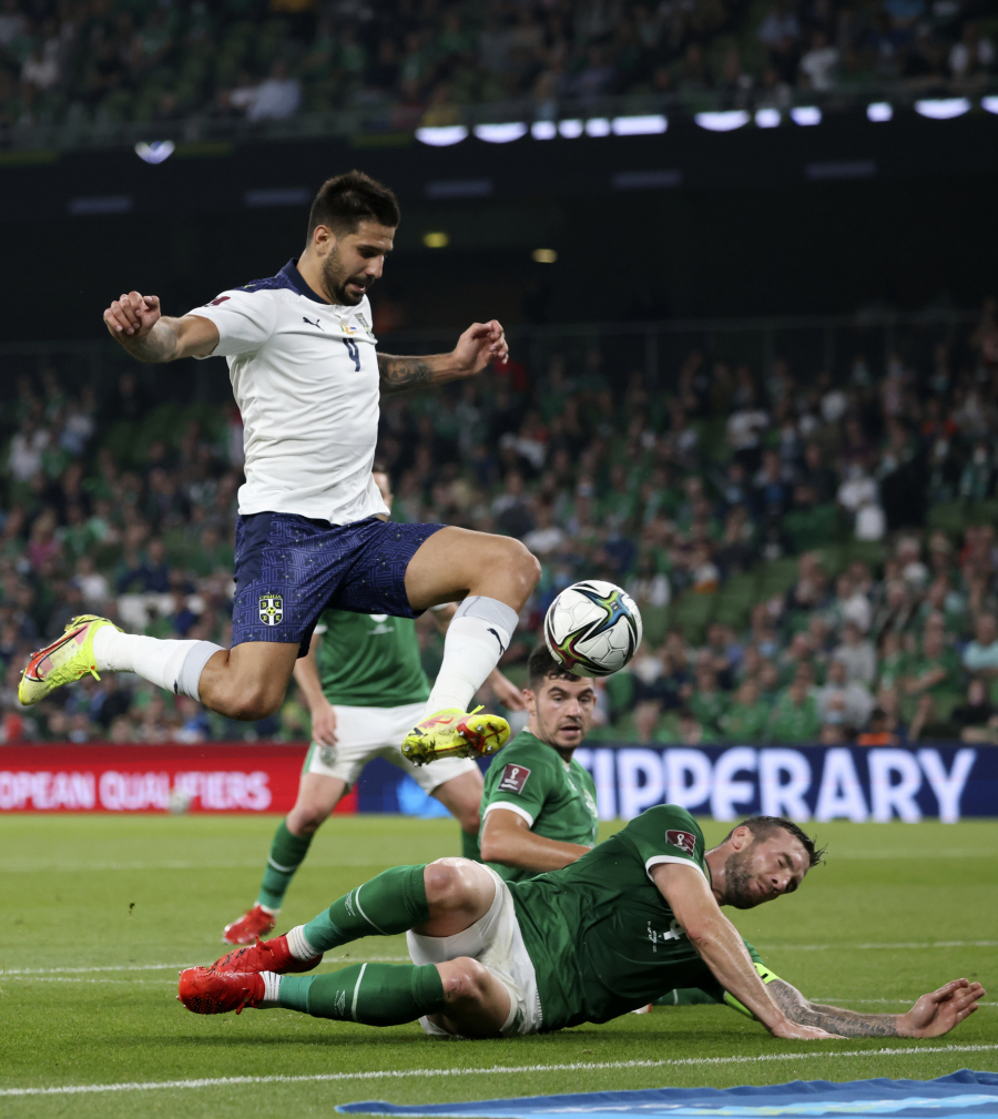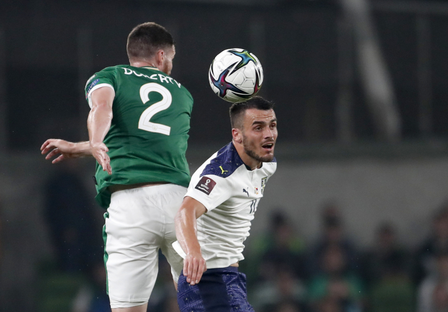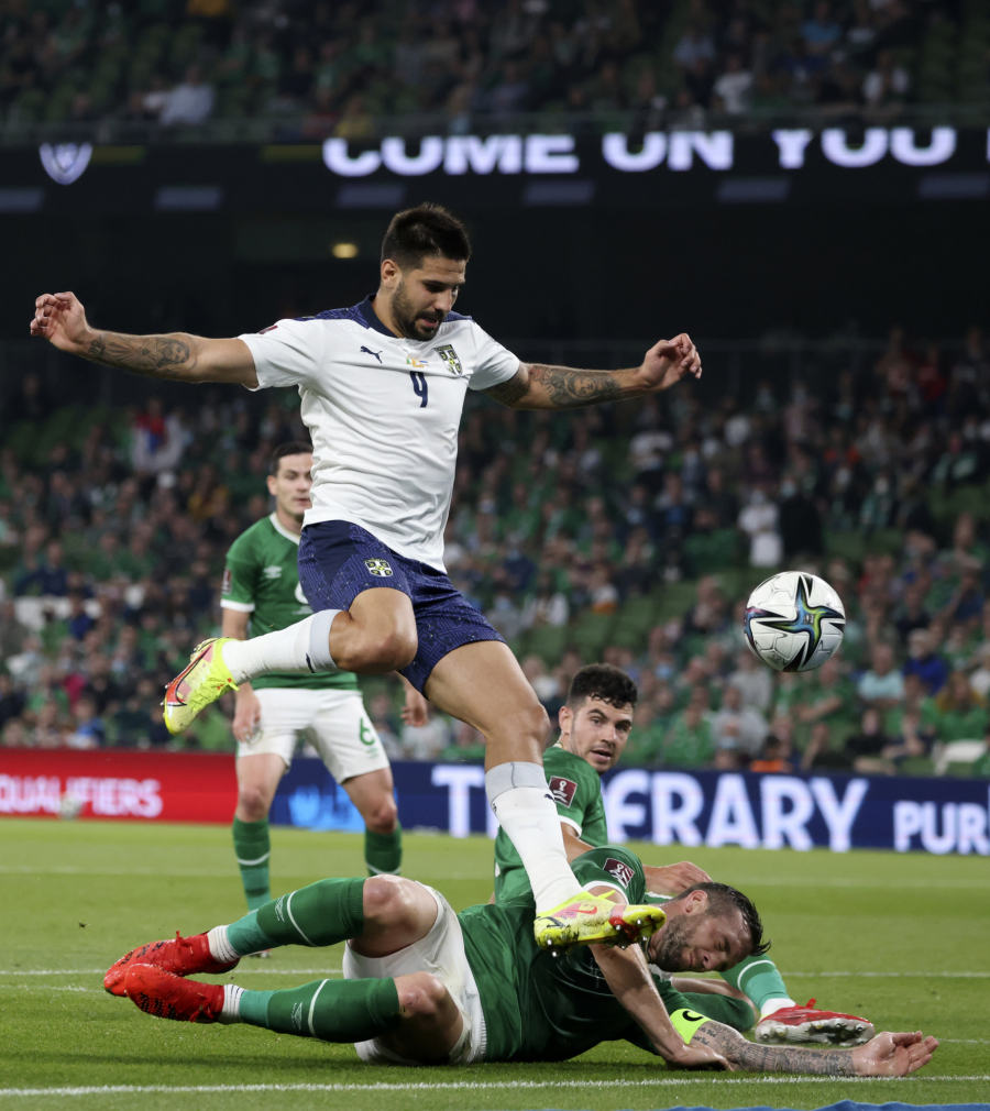 10. minut: Loše vraćena lopta Mitrovića, otvorila se šansa za Irce, na kraju je probao glavom Ajdah, lopta je prošla metar od stative, uz to je bio i ofsajd.