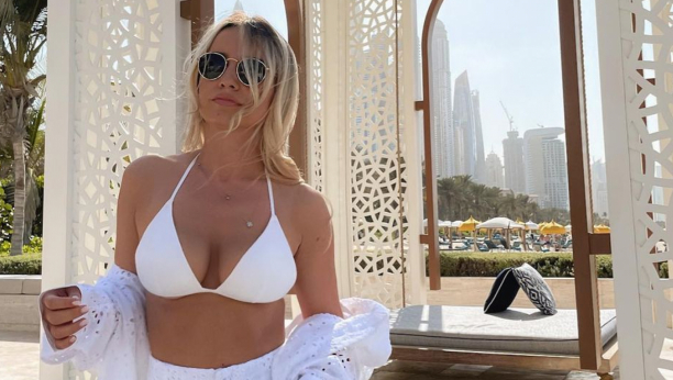 SVI SU GLEDALI U ZANOSNU PLAVUŠU! Supruga bivšeg fudbalera Partizana zasenila sve tokom slavlja Makedonaca! (FOTO)