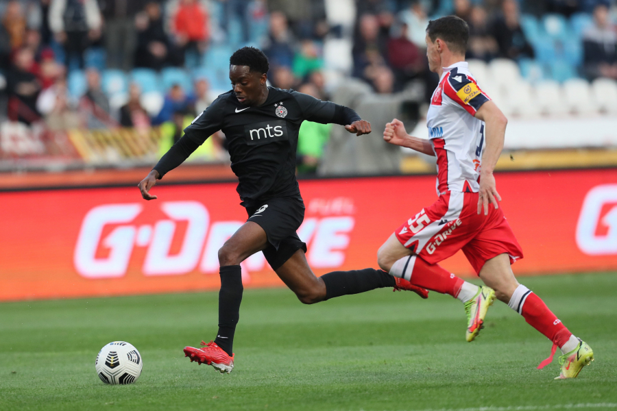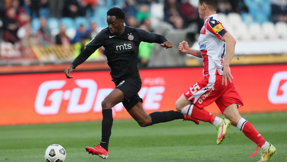 25. minut - Kakva šansa za Nikolu Terzića! Sjajno je prošao Kvinsi Menig pored Sanoga i namestio zicer mladom ofanzivcu Partizana, ali je on promašio sa nekih sedam metara gotovo prazan gol.