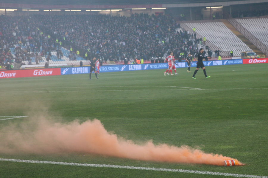 Osim terena, bilo je varnica i na atletskoj stazi, kao i na tribinama. Bakljade "grobara" i "delija" nisu izostale ni ovog puta, a Dejan Stanković i Aleksandar Stanojević bili su prilično nervozni pa su već u prvom poluvremenu zaradili žute kartone.