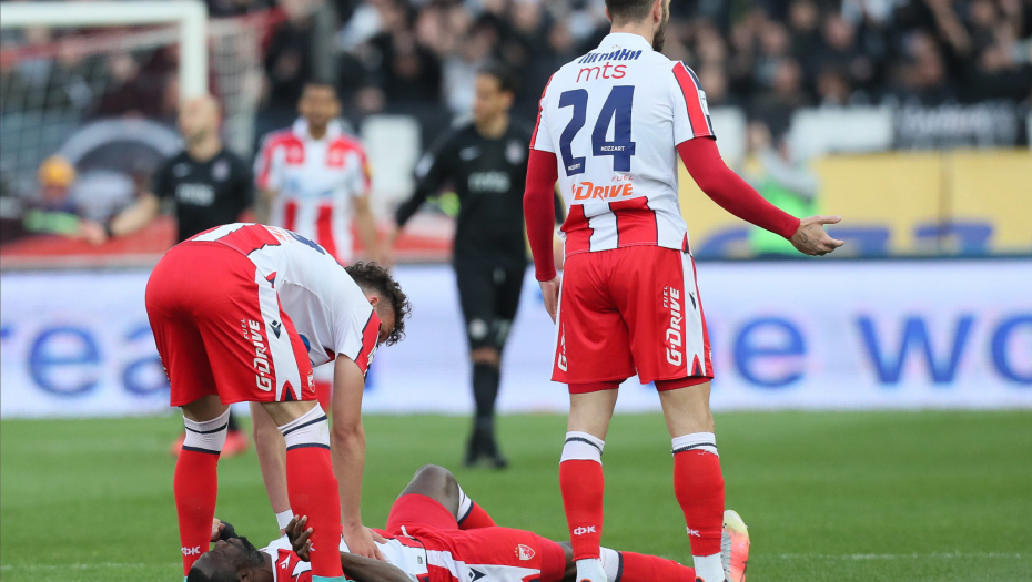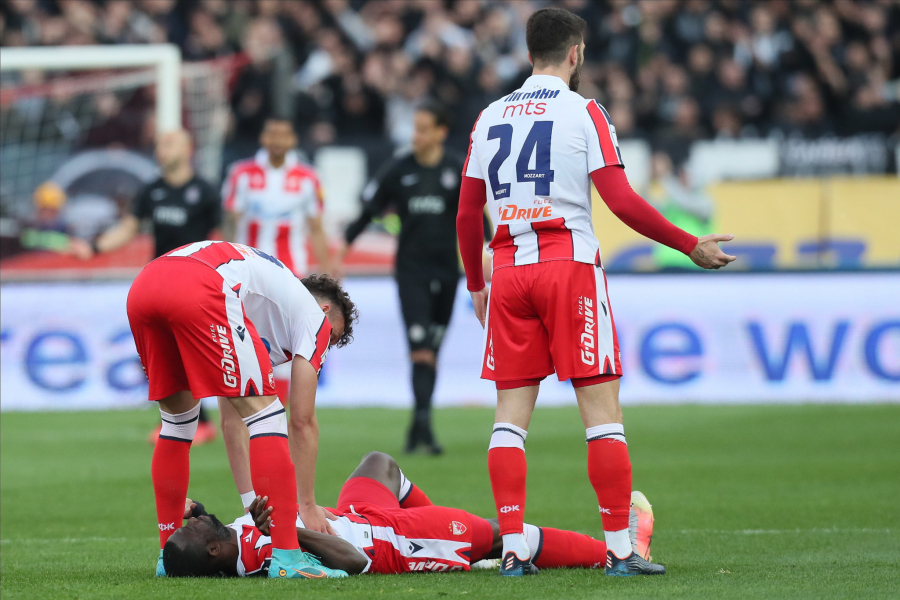 12. minut - Oštra igra na obe strane. Nakon što je Marko Jevtović završio na travi, sada se pomoć ukazuje Seku Sanogu koji je dobio udarac od Uroševića.