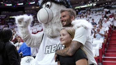 Njegova ćerka Harper Seven veliki je fan Džimija Batlera, prve zvezde Majamija, sa kojim se pozdravila posle utakmice.
