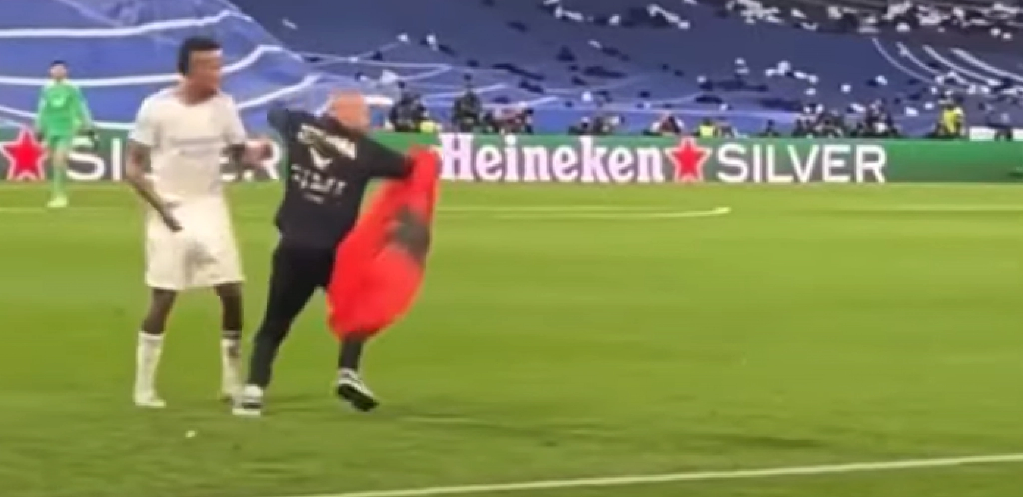 Želeo je štoper Eder Militao da se obračuna sa uljezom u jednom trenutku, pa je od toga odustao, a obezbeđenje je brzo reagovalo i uklonilo izgrednika sa terena.