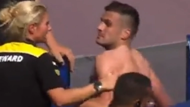 Kada je Tadić skinuo dres i pokušao da doda jednom navijaču, obezbeđenje je burno reagovalo i počelo da gura kapitena Ajaksa.