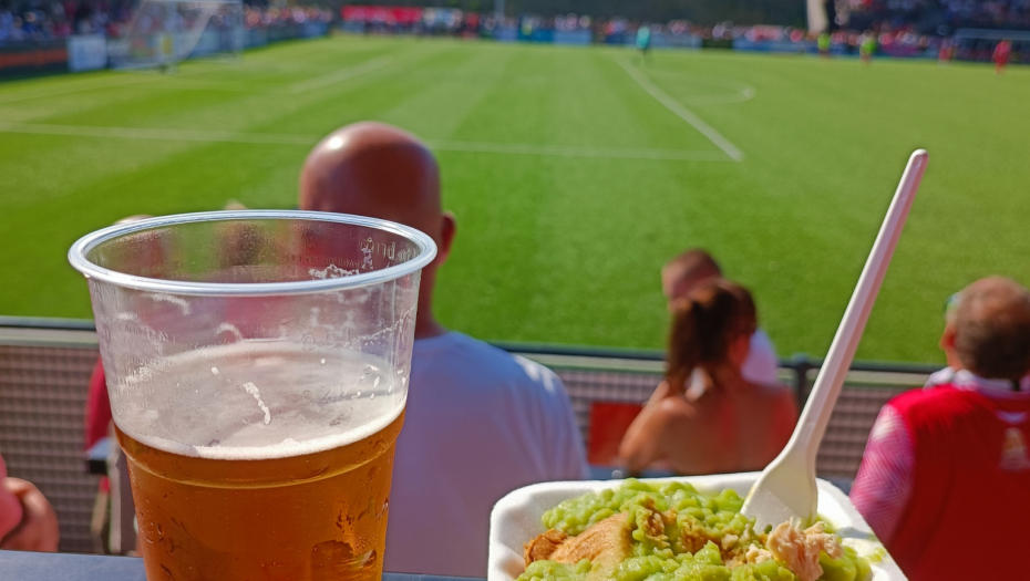 Tom mi je preporučio koje pivo je najbolje, poručio sam pitu sa piletinom i graškom (možda ne zvuči lepo, ali je ukus fantastičan). Bili smo spremni za utakmicu. Odmah je počelo burno, navijači reaguju na gotovo svaki potez protivnika i sudije, naravno.