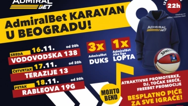 Dakle, sreda, četvrtak i petak, AdmiralBet karavan u Beogradu, vrhunski provod je zagarantovan kao i nagrade!
