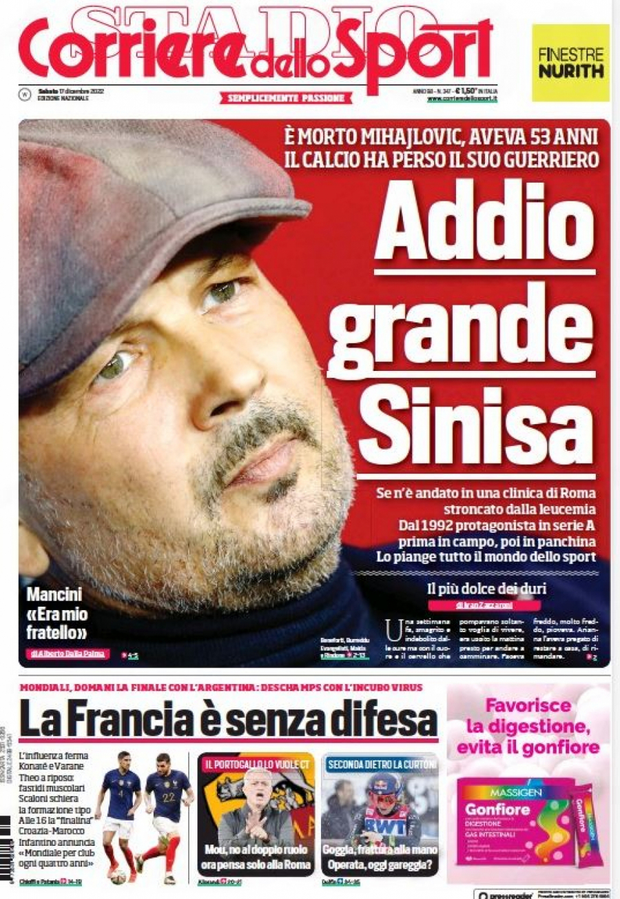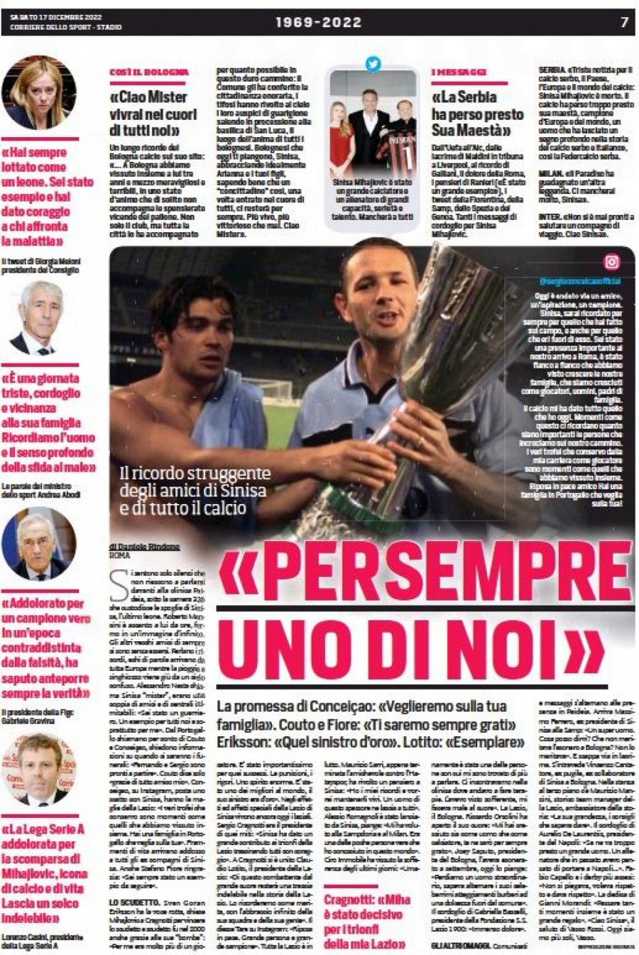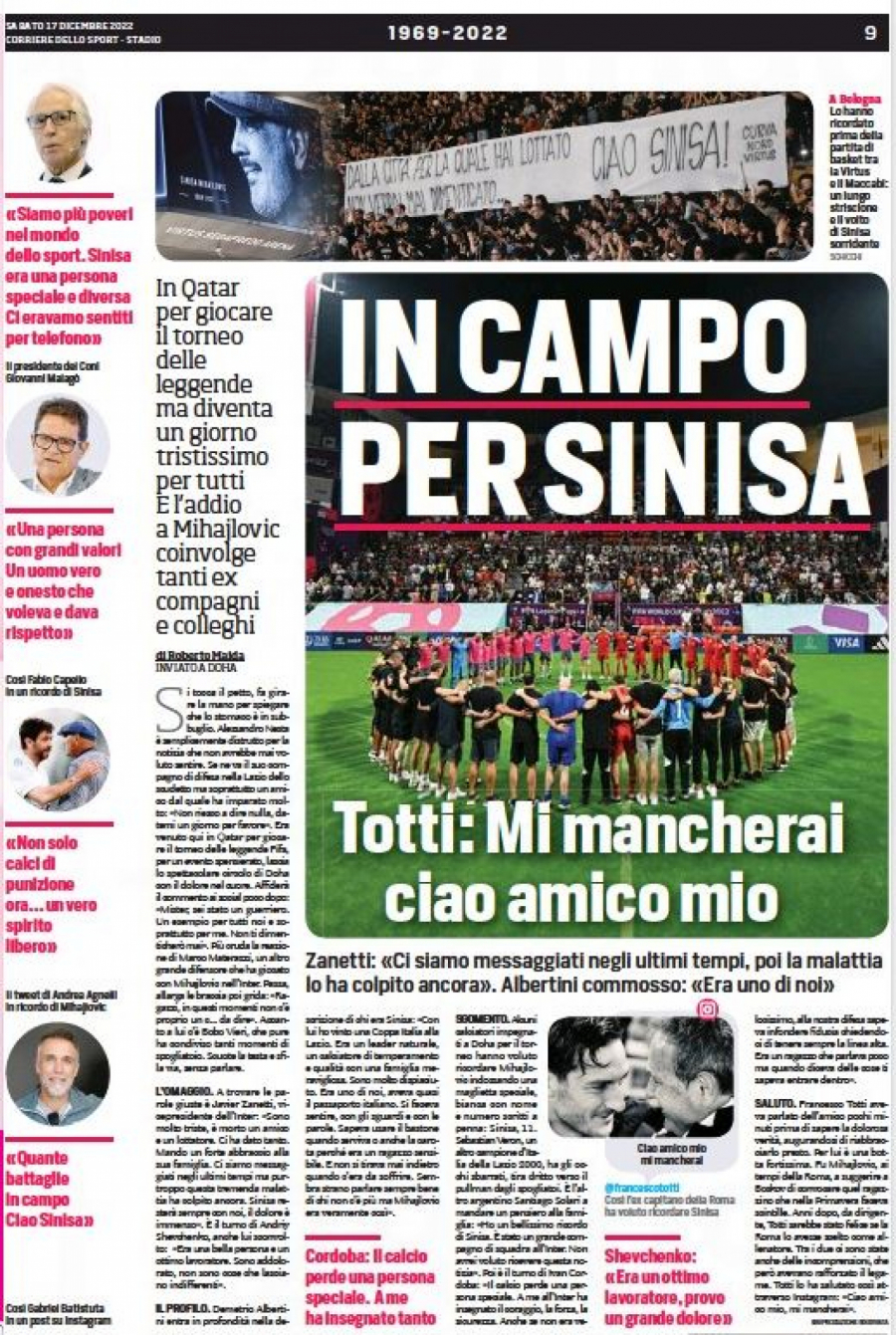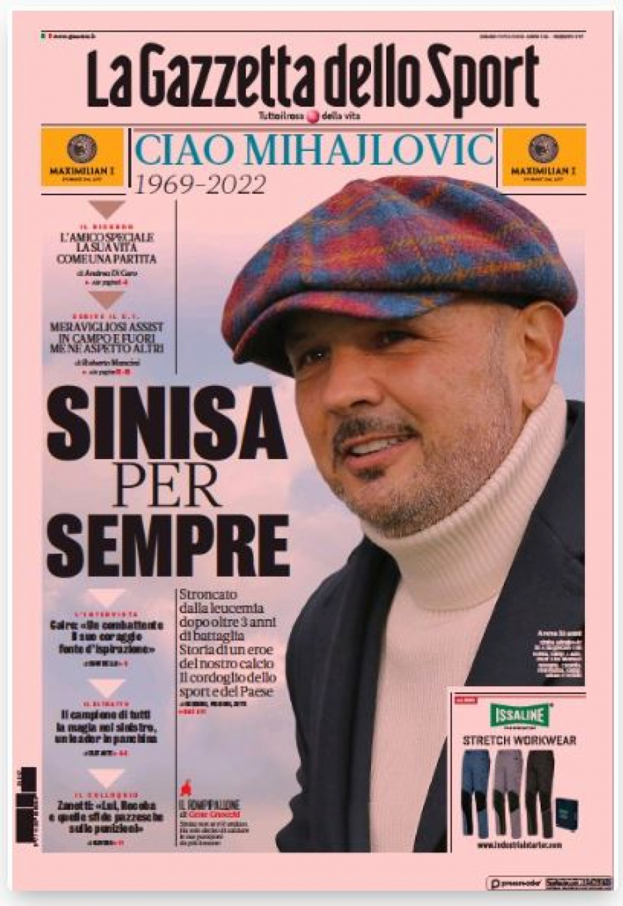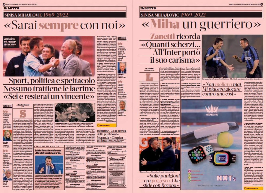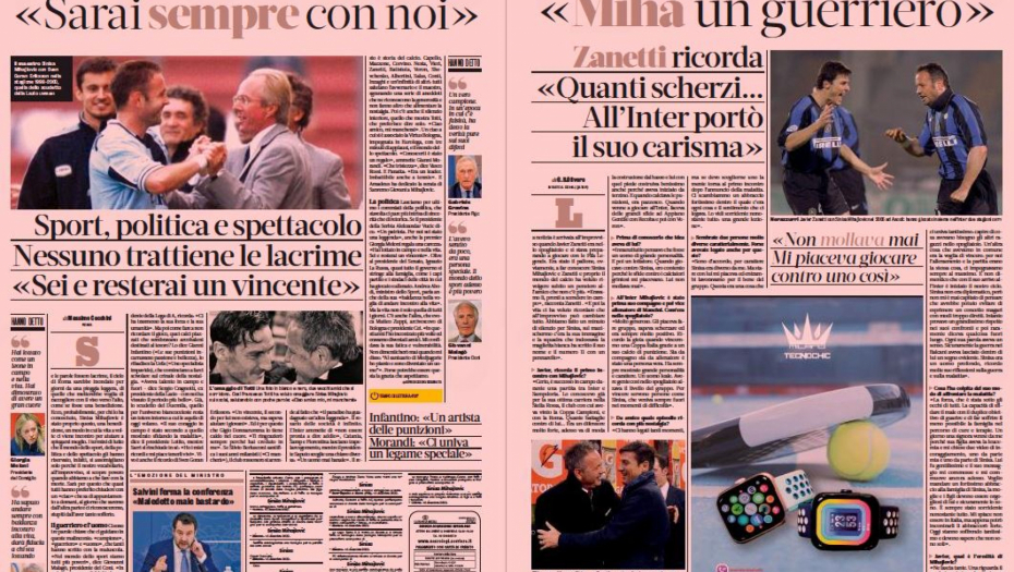 Pogledajte u našoj galeriji, na koji način su dva najuglednija italijanska sportska lista ispratila Mihu u večnost. Dovoljno je reći - "Gazeta" mu je posvetila sedam strana, a "Korijere" čak 11!