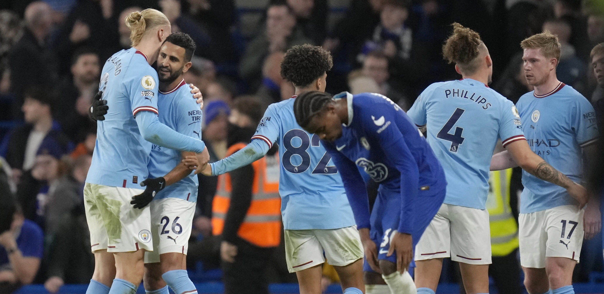 Pobedonosni gol na "Stamford Bridžu" postigao je Rijad Marez u 63. minutu, posle asistencije Džeka Griliša.