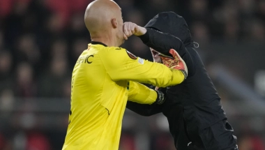 SRBIN NAPADNUT NA MEČU LIGE EVROPE Huligan utrčao u teren i udario Dmitrovića, srpski golman mu uzvratio (VIDEO)