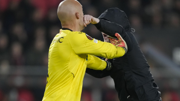 Međutim, utakmicu nije obeležilo ništa drugo do užasnog poteza jednog od pristalice domaćih. Navijač PSV-a utrčao je u teren i hteo da se obračuna sa našim golmanom Markom Dmitrovićem.