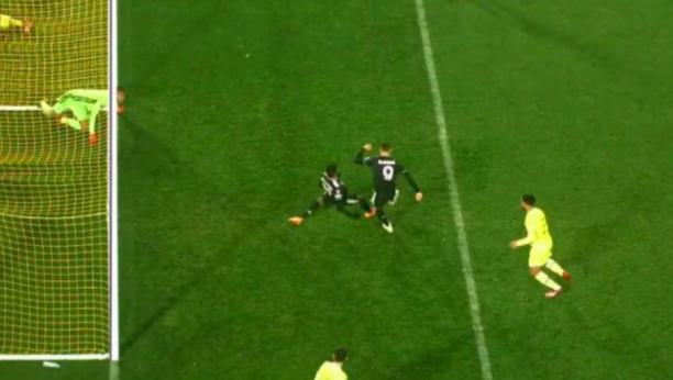 Lopta se odbila do Anhela di Marije koji je pokušao glavom, a izbijenu loptu je Dušan Vlahović trebalo da zakuca u mrežu.