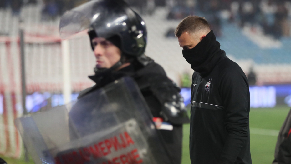 72. minut - Belić je završio na travi bez svesti, odmah su pohrili igrači oba tima da mu pomognu.
