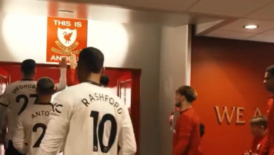 U pitanju je tabla koja se nalazi na zidu pred izlazan na teren "Enfilda", a koju obično diraju igrači Liverpula, pa je bilo neobično videti zašto se Vut Vehorst odlučio na ovaj potez.