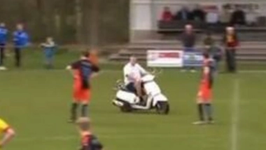 NA MOTORU JURIO PO TERENU Fudbaleri nisu znali šta se događa, razlog je bizaran (VIDEO)