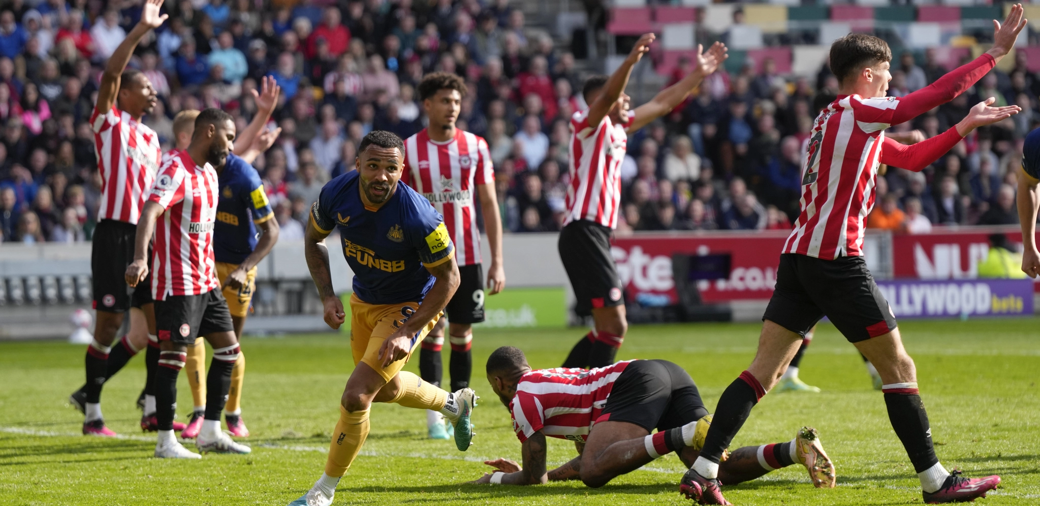 Fudbaleri Njukasla pobedili su danas na gostovanju Brentford sa 2:1, u utakmici 30. kola Premijer lige. AP Photo/Alastair Grant