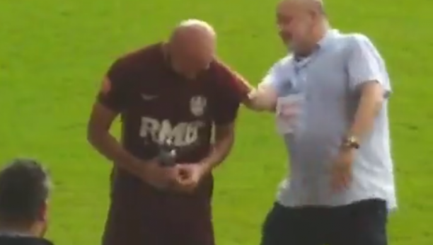 On je, nakon što je sudija označio kraj utakmice, prišao fudbaleru Kluža Arlindu Ajetiju i počeo da ga "obrađuje".