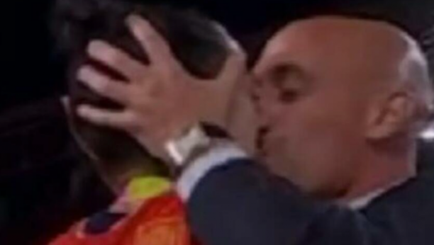 Uz brojne fudbalske zvaničnike i članove španske kraljevske porodice Rubijales je pozdravio fudbalerke na pobedničkom postolju. On je u prisustvu 16-godišnje princeze Sofije, uhvatio za lice i poljubio u usta reprezentativku Španije Dženi Ermoso. Posle toga zagrlio je još neke fudbalerke, ali i kraljicu Letisiju.